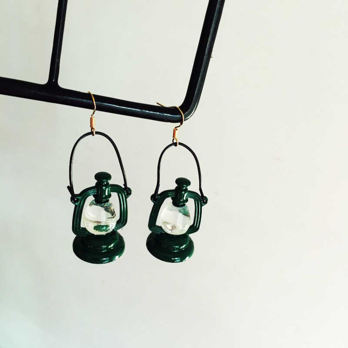 Сережки в ретростилі, вироби ручної роботи, сережки з лісовою гасовою лампою