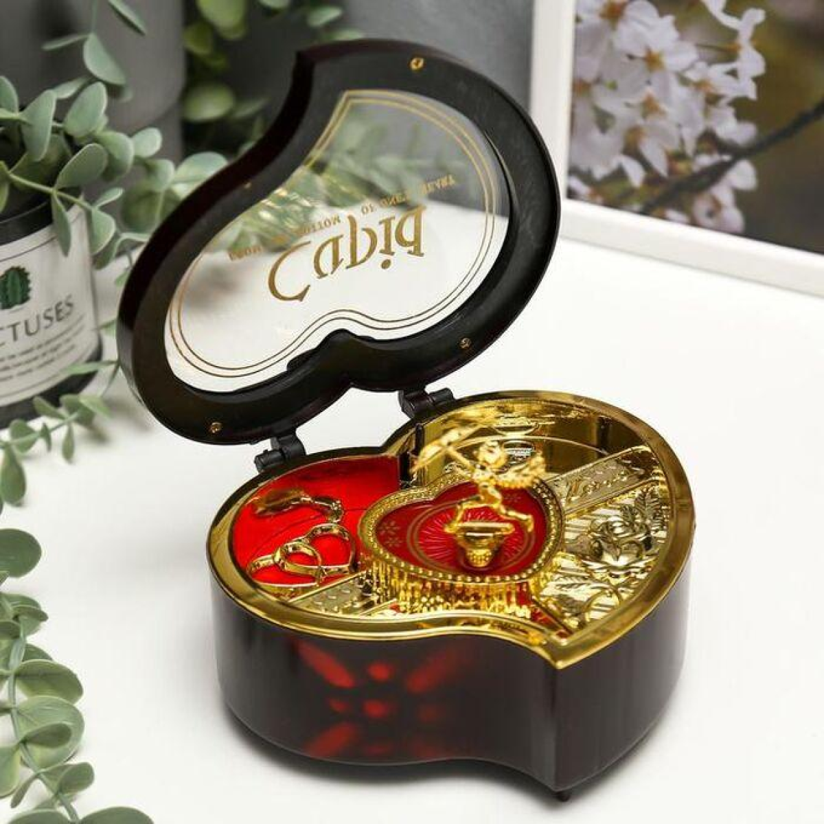 Скринька “Серце“ механічна музична скринька для прикрас із купедоном