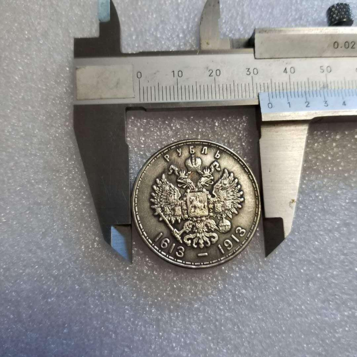 Монета номіналом 1 рубель, випущена 1913 року, присвячена 300-річчю Будинки Романових і є срібною. На аверсі монети зображені похмурі портрети імператора Миколи II (на передньому плані) і царя Михайла Федоревича (на задньому плані), засновника династії. На реверсі розміщений Малий Національний герб Російської імперії, над яким вказаний номінал «РУБЛЬ», а під ним — ювілейна дата «1613-1913».