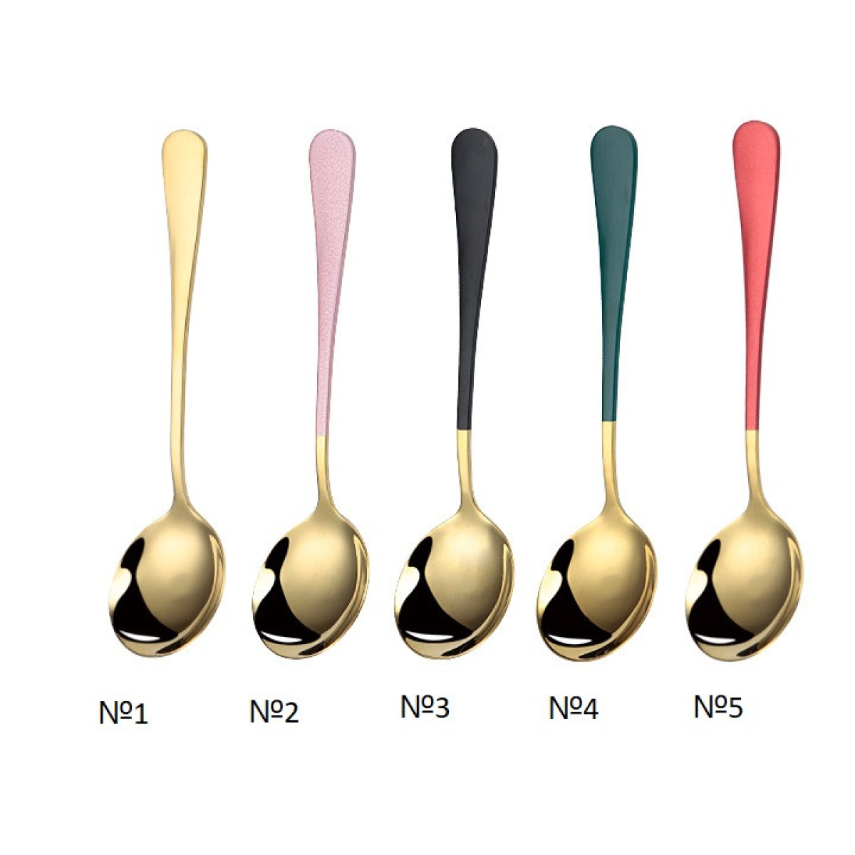 Чайна ложка кругла голд із неіржавкої сталі кольорова ручка 17 см