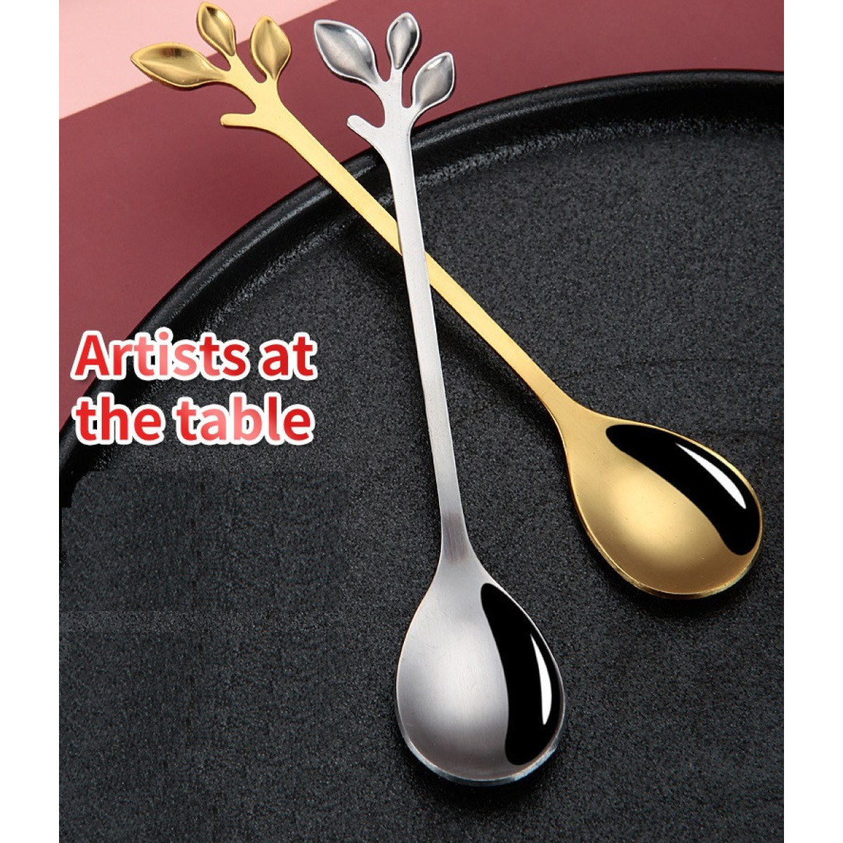 Креативна високоякісна ложка Листочки Голд із неіржавкої сталі 12 см