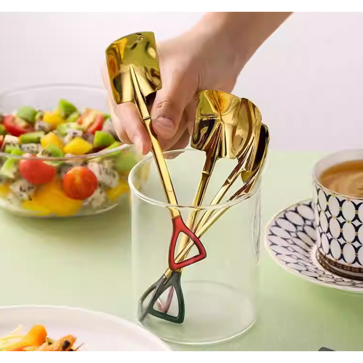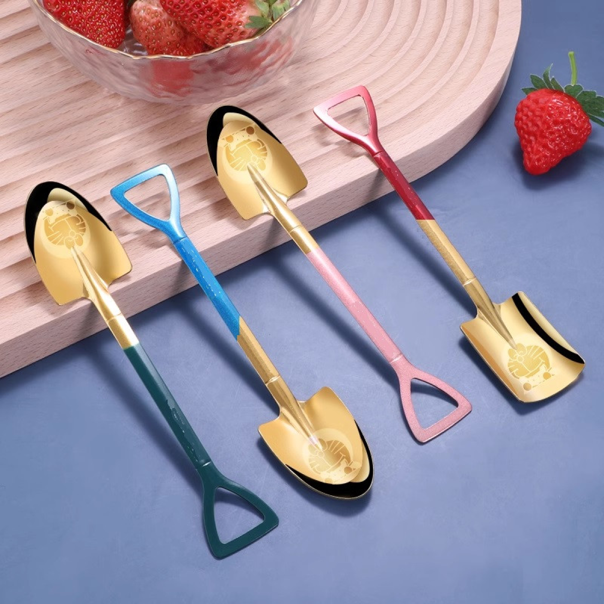 Чайна ложка Лопата совкова Голд із неіржавкої сталі 15 см (кольорова ручка з котом)