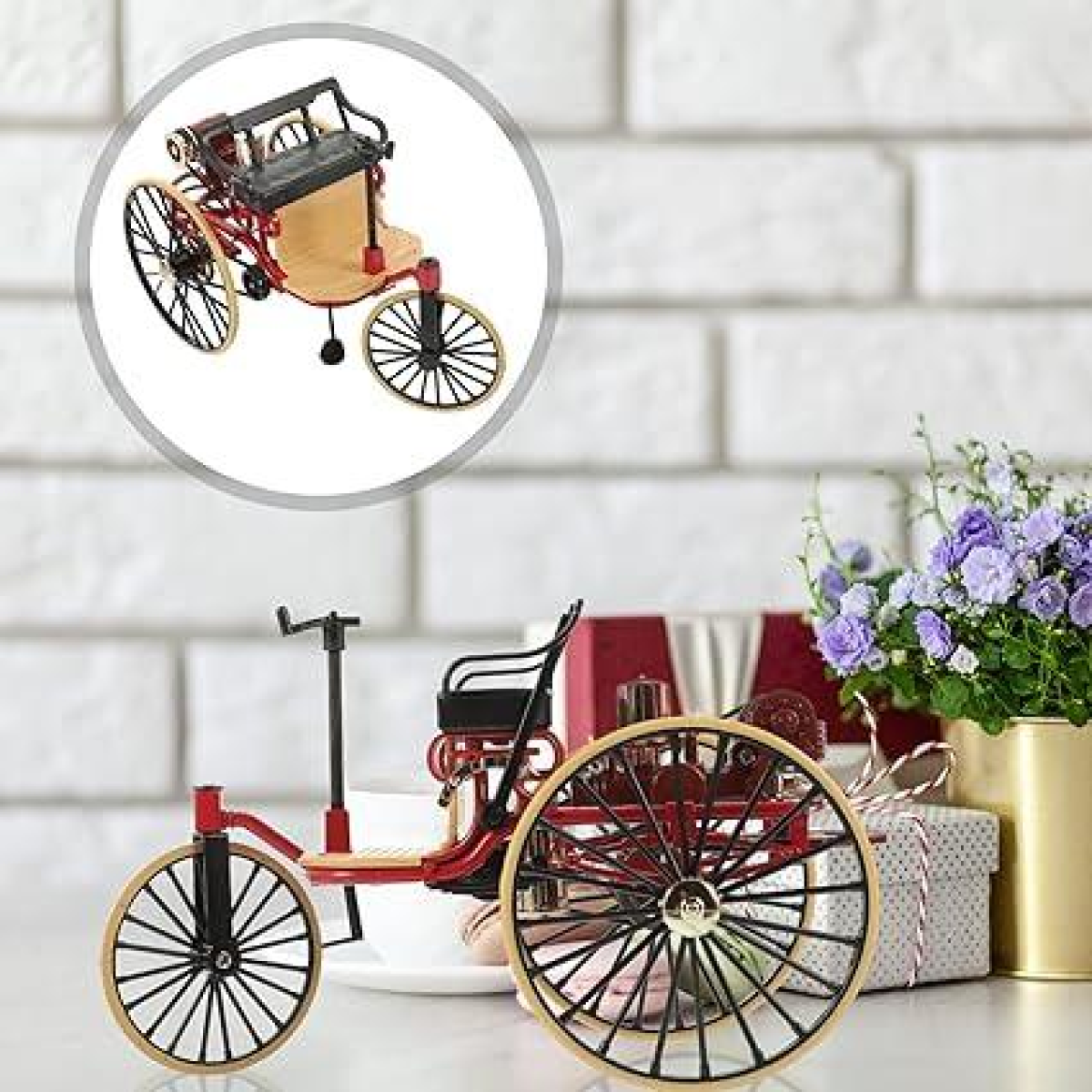 Колекційна класична ретро модель триколісного автомобіля, масштаб 1:12