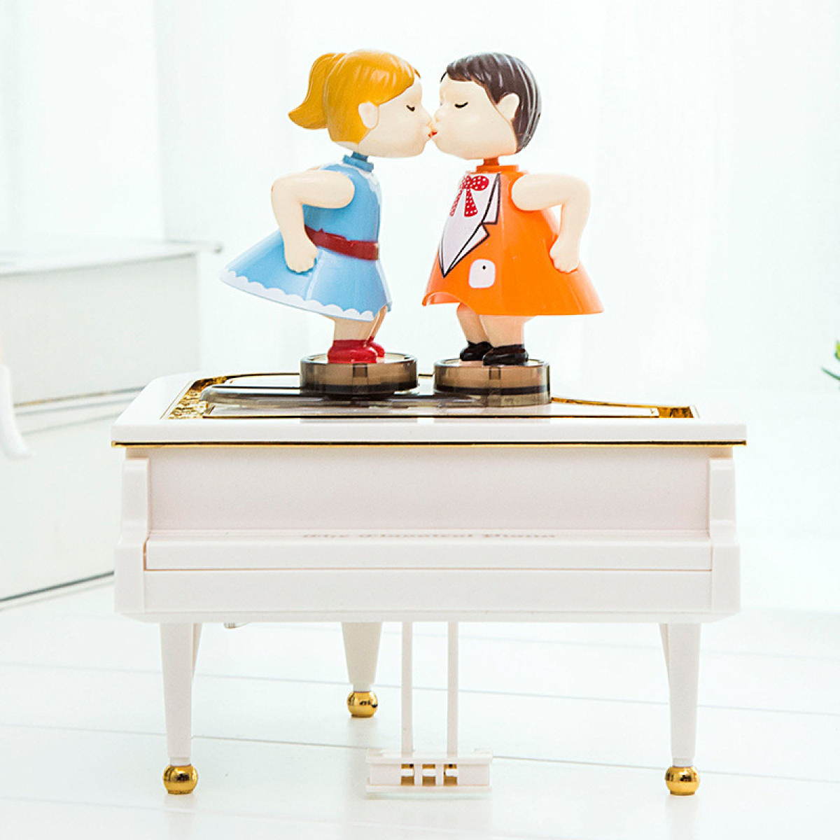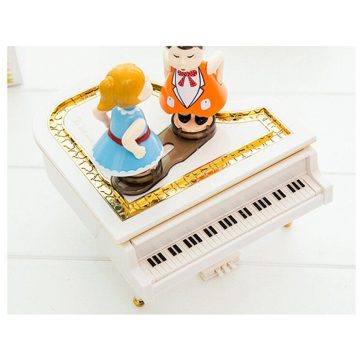 Музична скринька піаніно, Білий Рояль із матеріалом, що танцює: екологічно чистий пластик парою, 15х16х18см