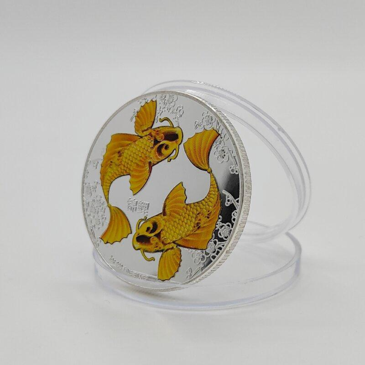 Щаслива срібна монета “Золоті рибки“ двоколірна