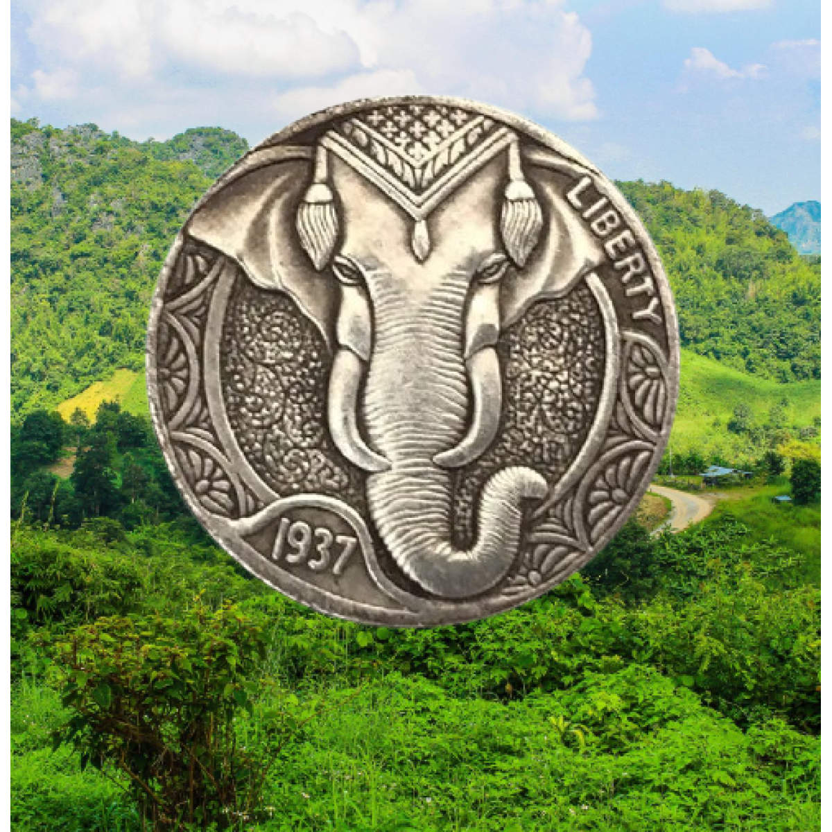 Сувенірна срібна монета 5 цент 1937г Слон
