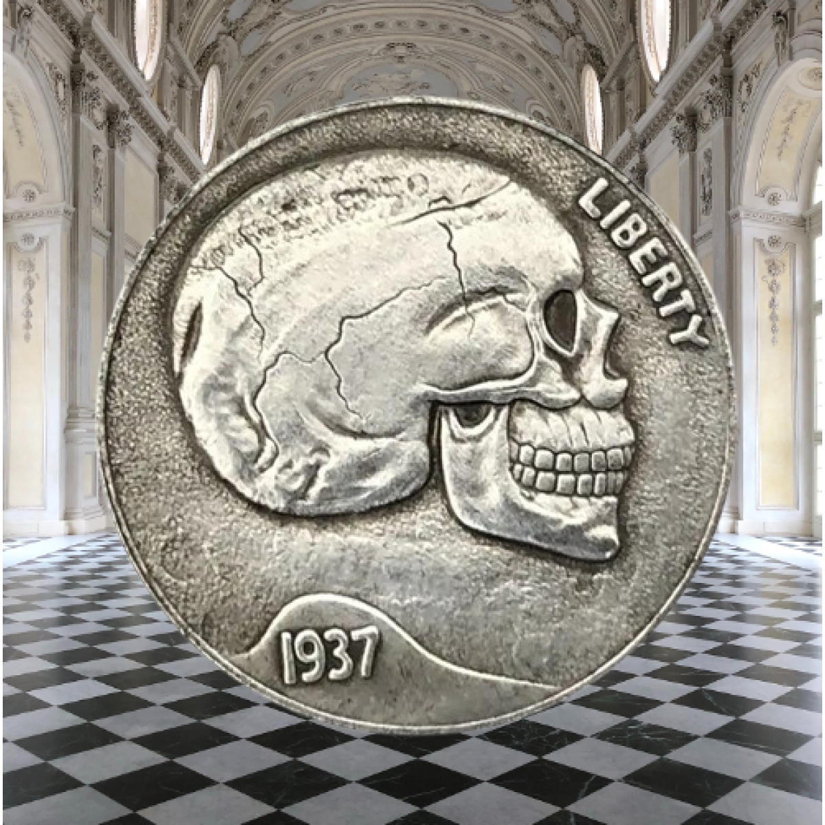 Сувенірна срібна 5 центов, монета 1937г Череп