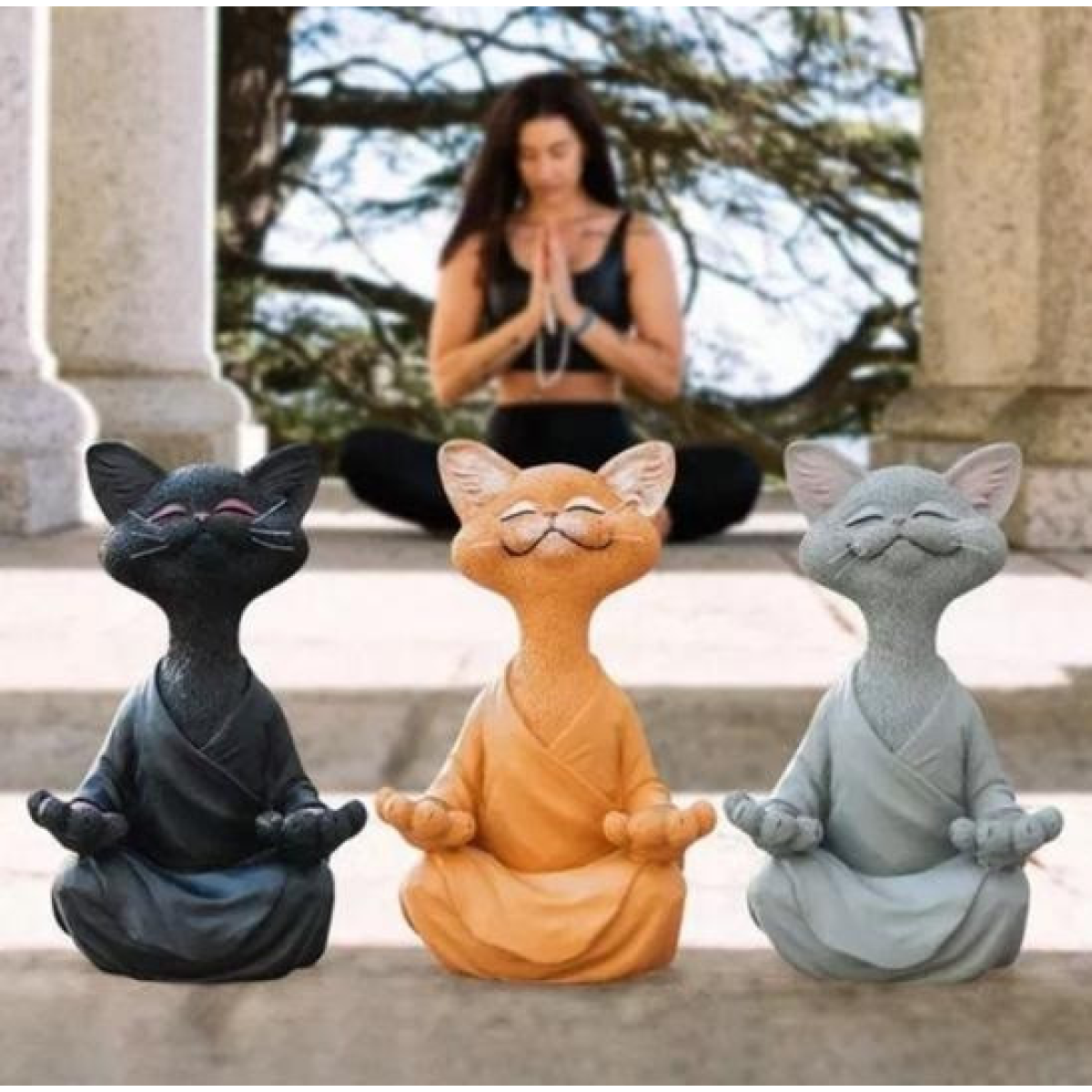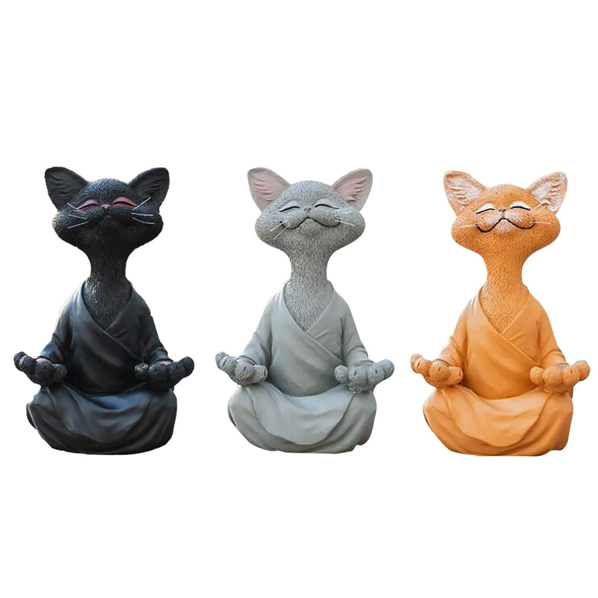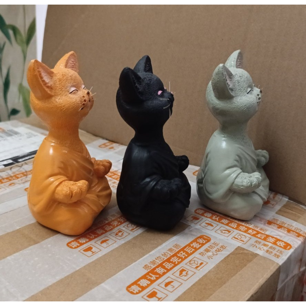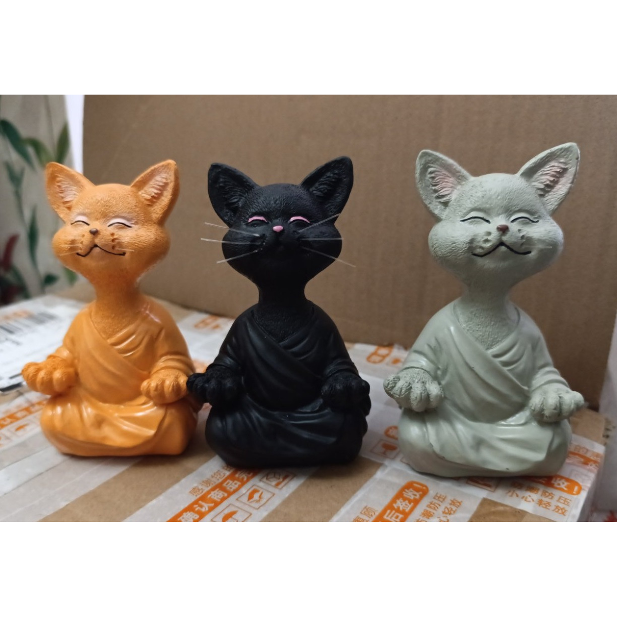 Причутлива фігурка кота Будди 12х8 см, медитація, йога, колекційна колекція, щасливий кіт Чорний, Сірий