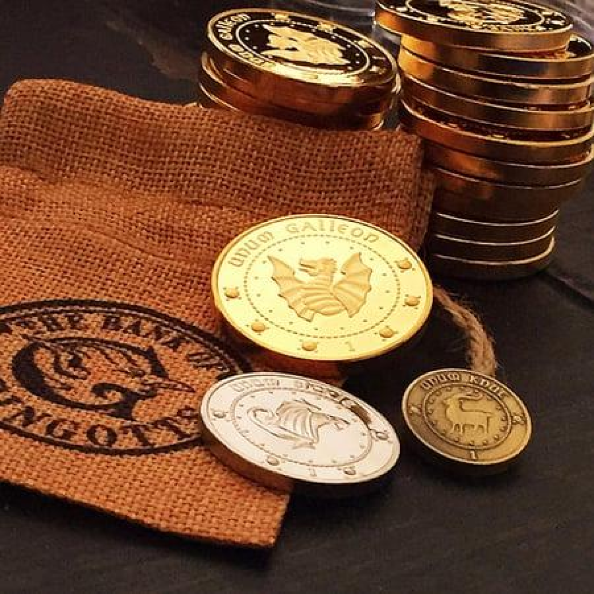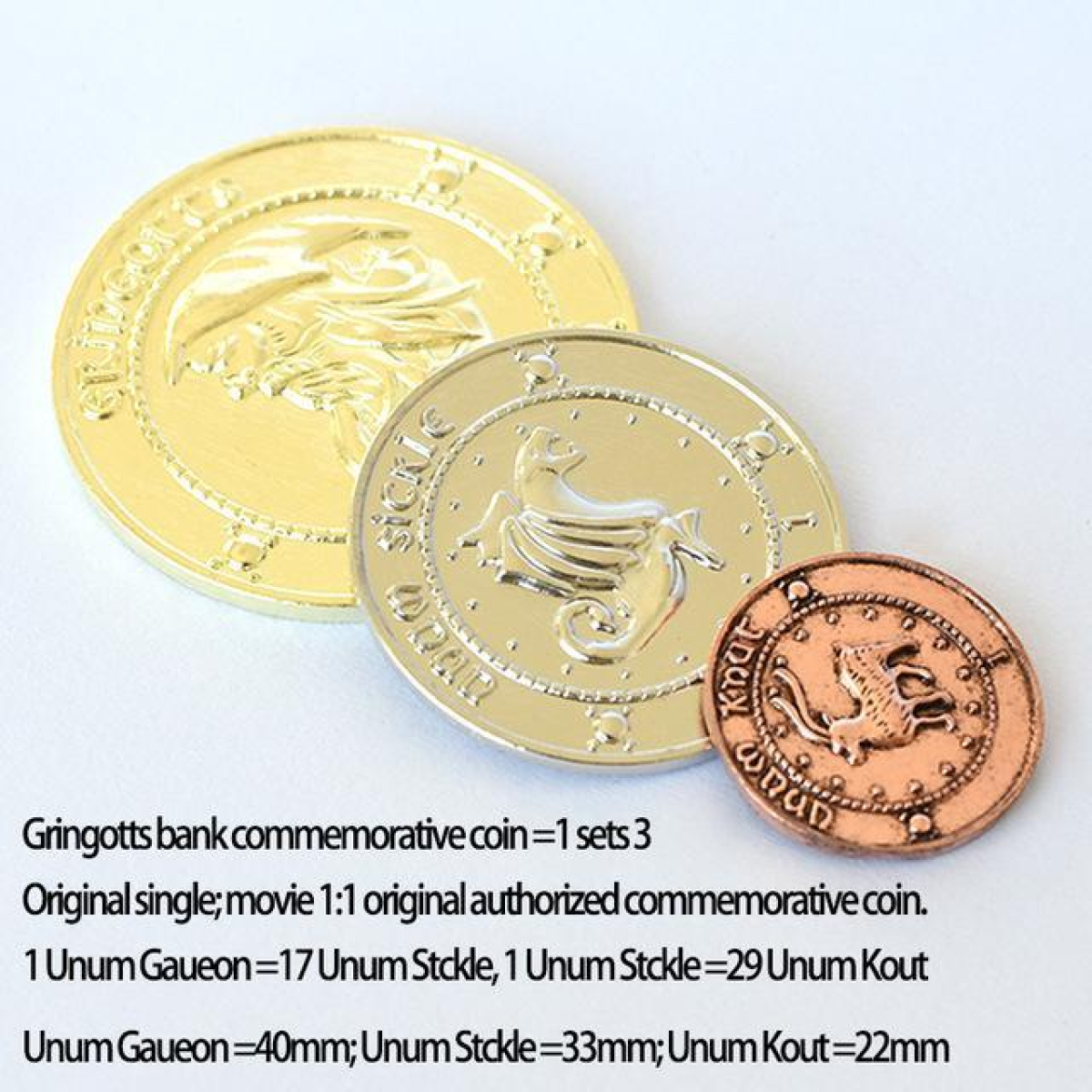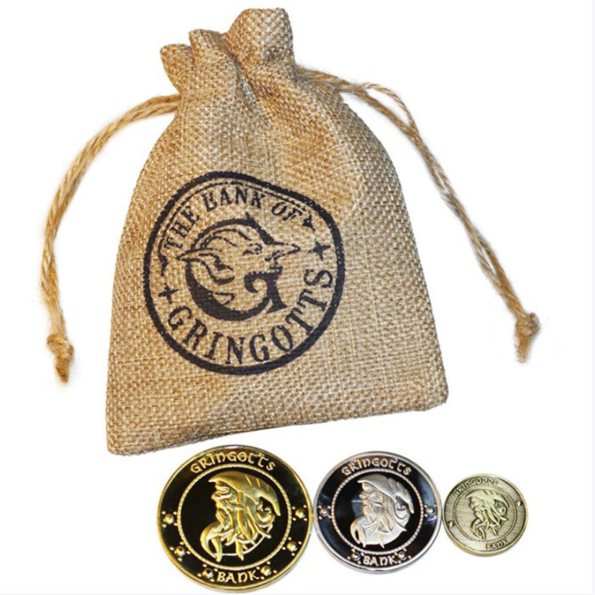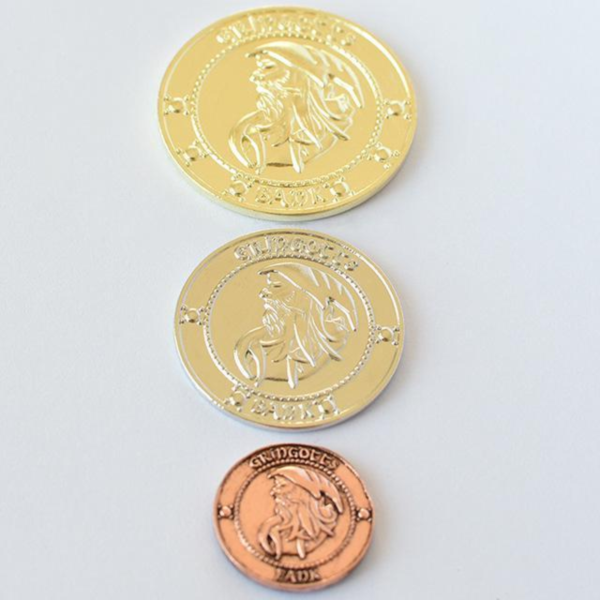 Монети банку Грінготтс, зі світу Гаррі Поттера (силі, галеони, кнати та мішок) колекція монет