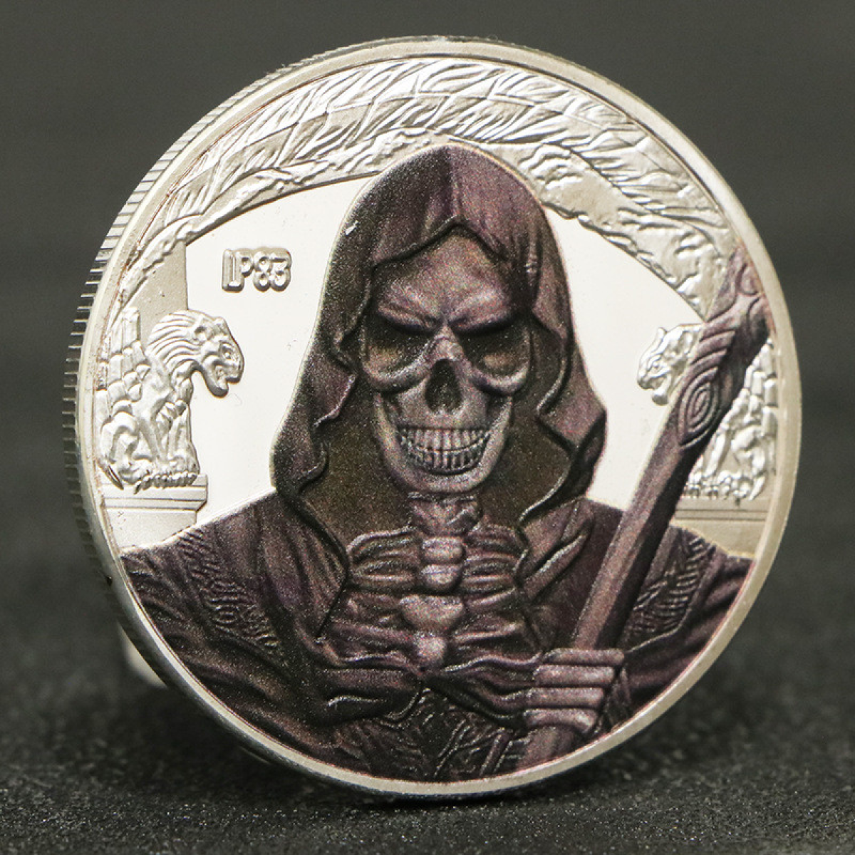 Ця монета із серії «Пристрашні казки», присвяченої казкою з альтернативним кінцем. У цьому випуску - Смерть з косою (мрячний жинець). Монета має оздоблення під старовину,