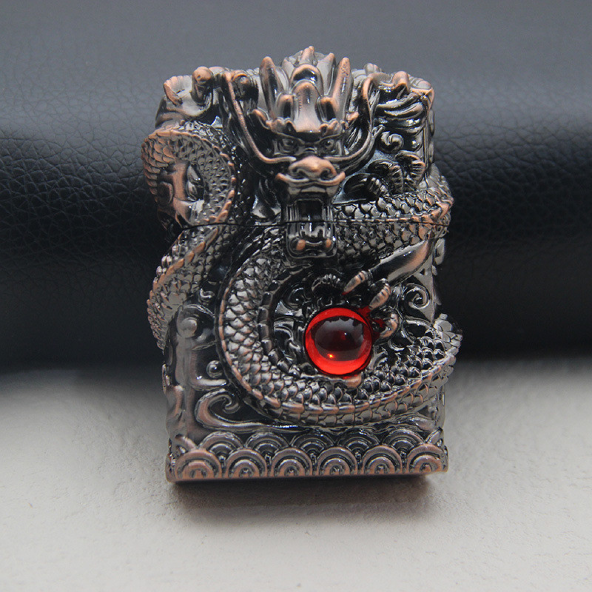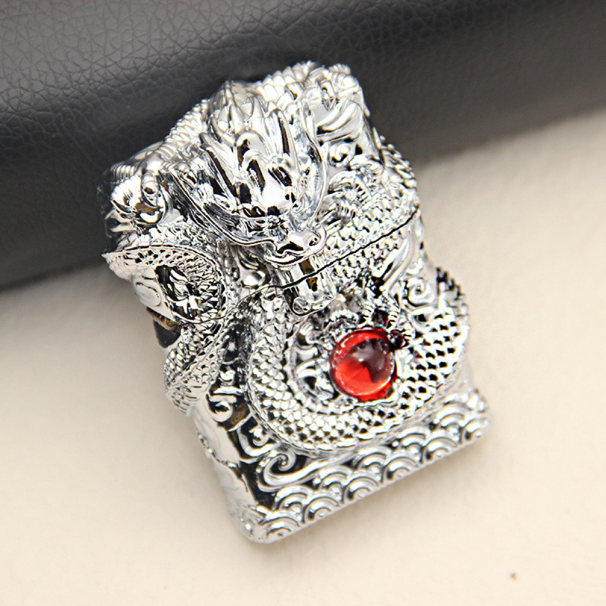 Креативна висококласна важка металева рельєфна гасова запальничка з драконом, біла