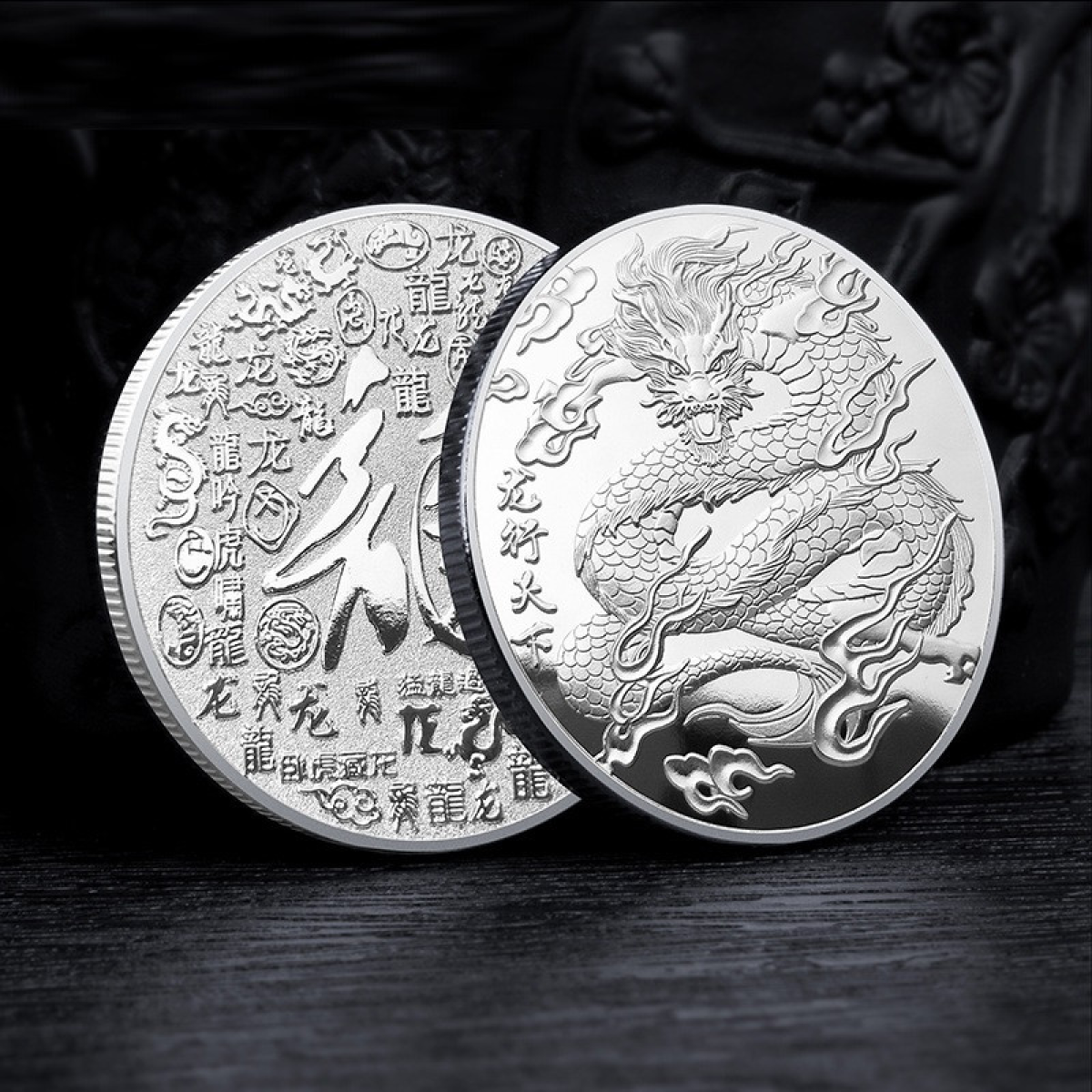 Пам“ятна монета на честь Року Дракона сильвер, рельєфні символи
