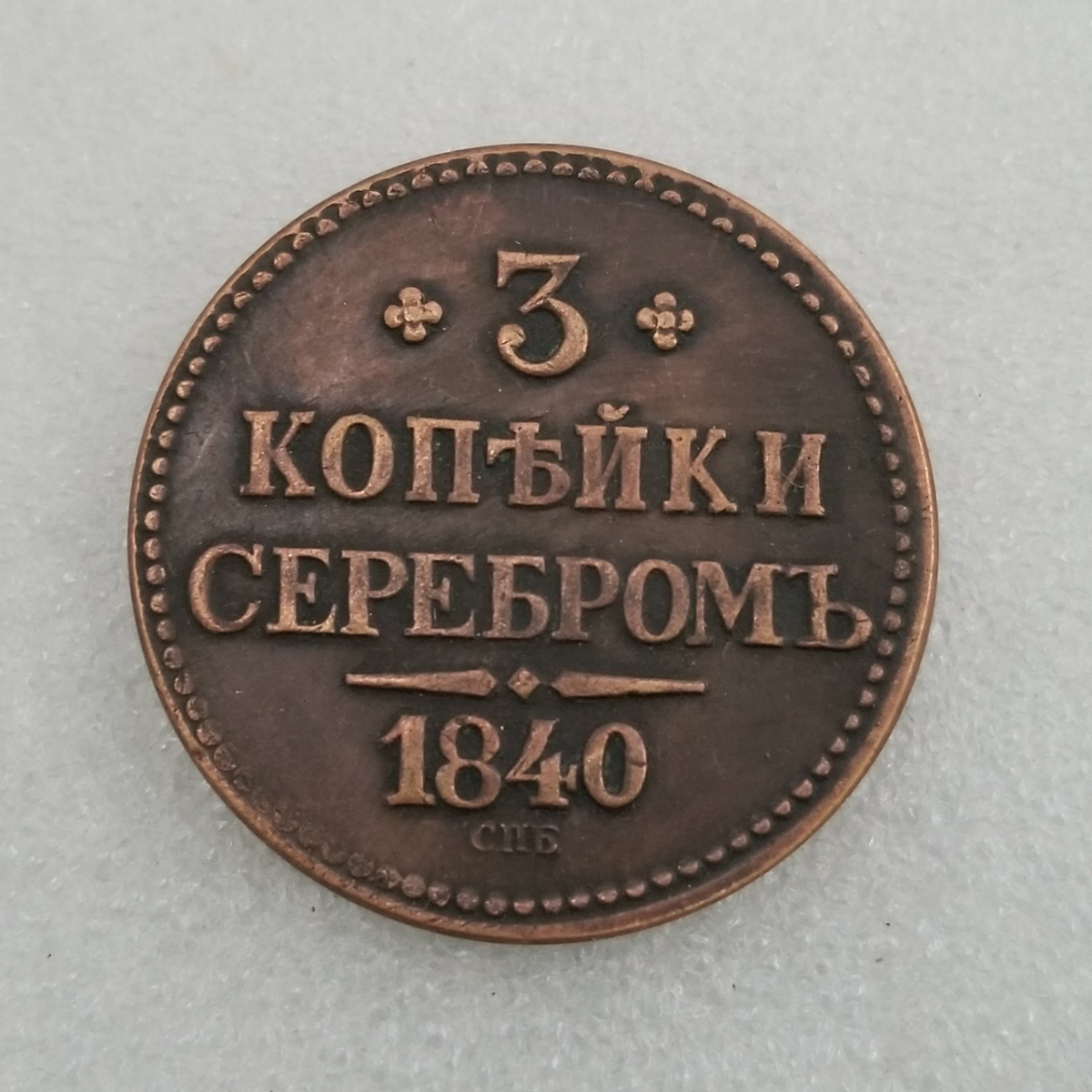 Сувенір монета 3 копійки сріблом 1840 року СПБ