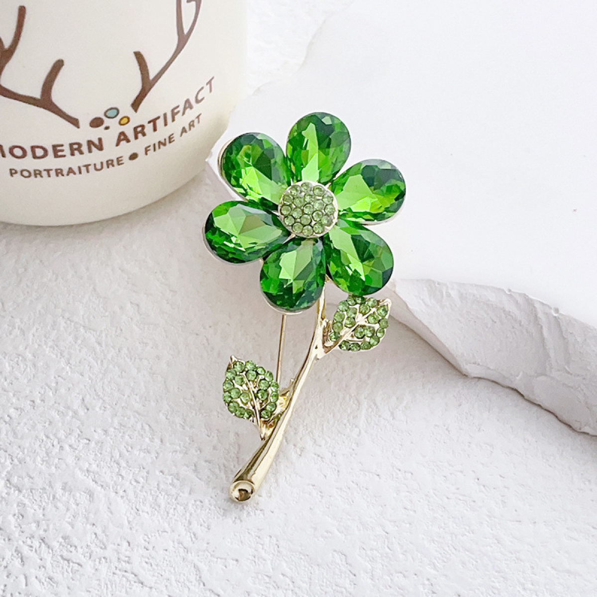 Брошка-квітка з пелюстками кристалами зеленого кольору, прикраса для костюма, светра, шарфа