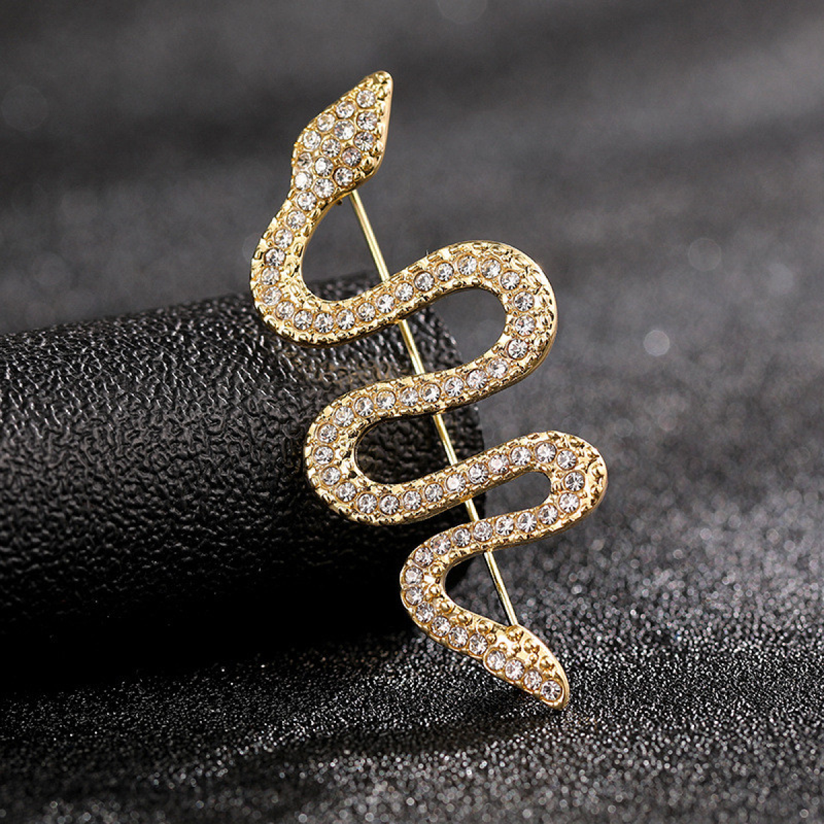Брошка у формі звиваної змії в стразах, зі сплаву, бейдж для рюкзака, золотий колір,