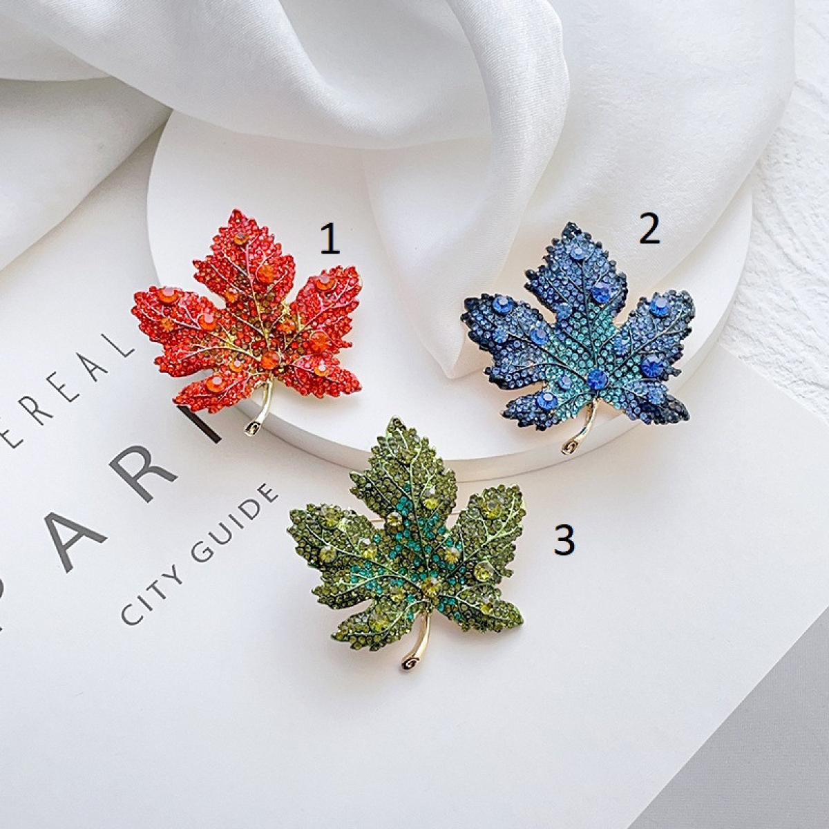 Брошка Кленовий лист стрази, біжутерія з кристалами (5х5см)