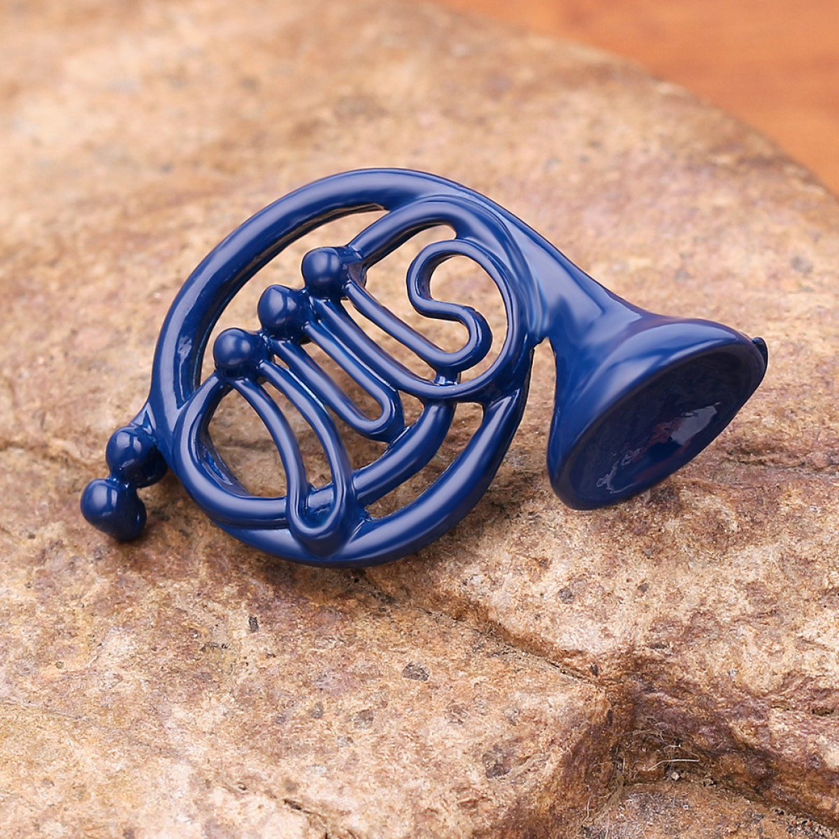 Брошка значок піни Вінтажна кругла Труба, музичні інструменти в синьому кольорі