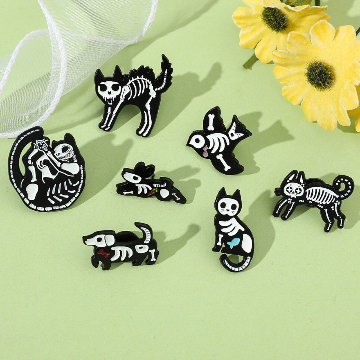 Брошка пін-значок Скелет тварини, із серії Хелловін