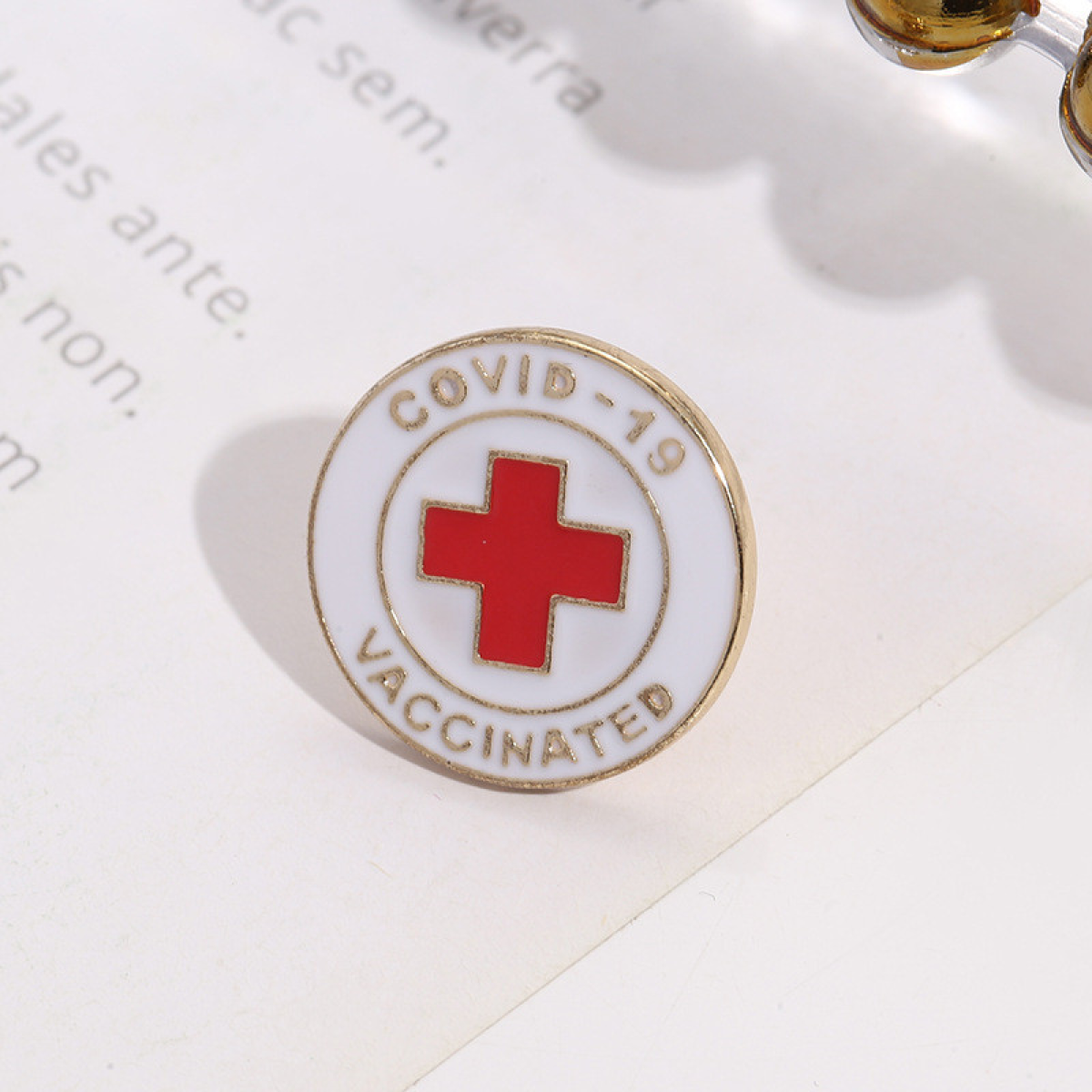 Металевий значок брошка (пін) Вакцинація Covid-19 білий