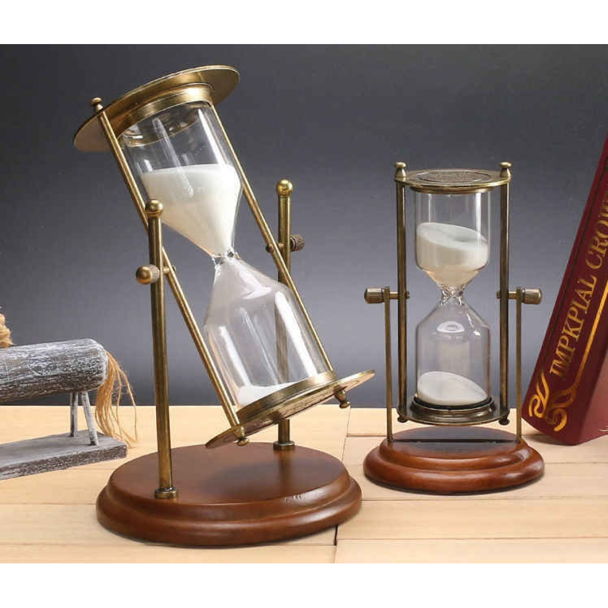 Годинник пісочний у металевому корпусі, перекидні 30 хв дерево основа (25*15см)