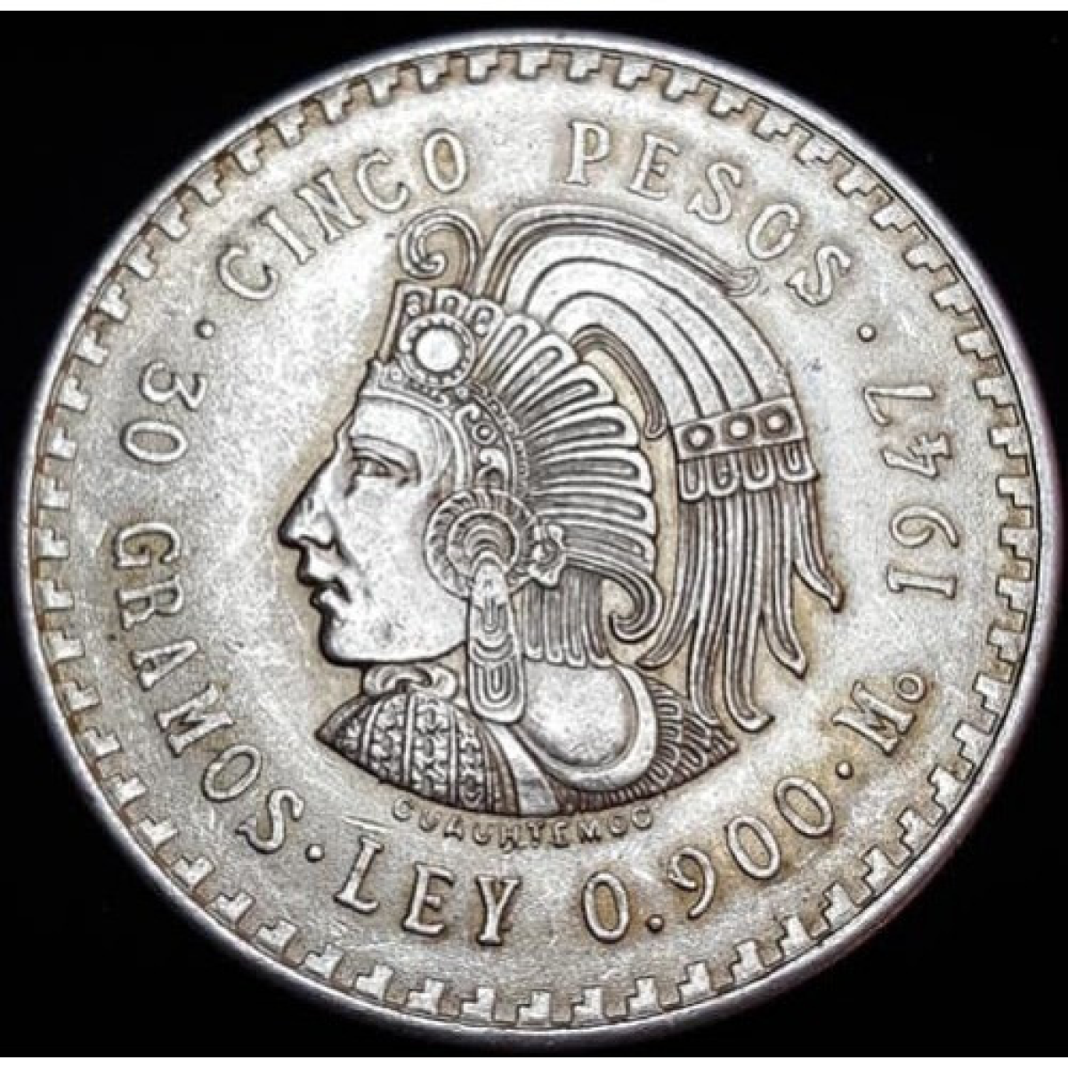 Сувенір мексиканське 5 песо з мексиканським орлом 1947 року.