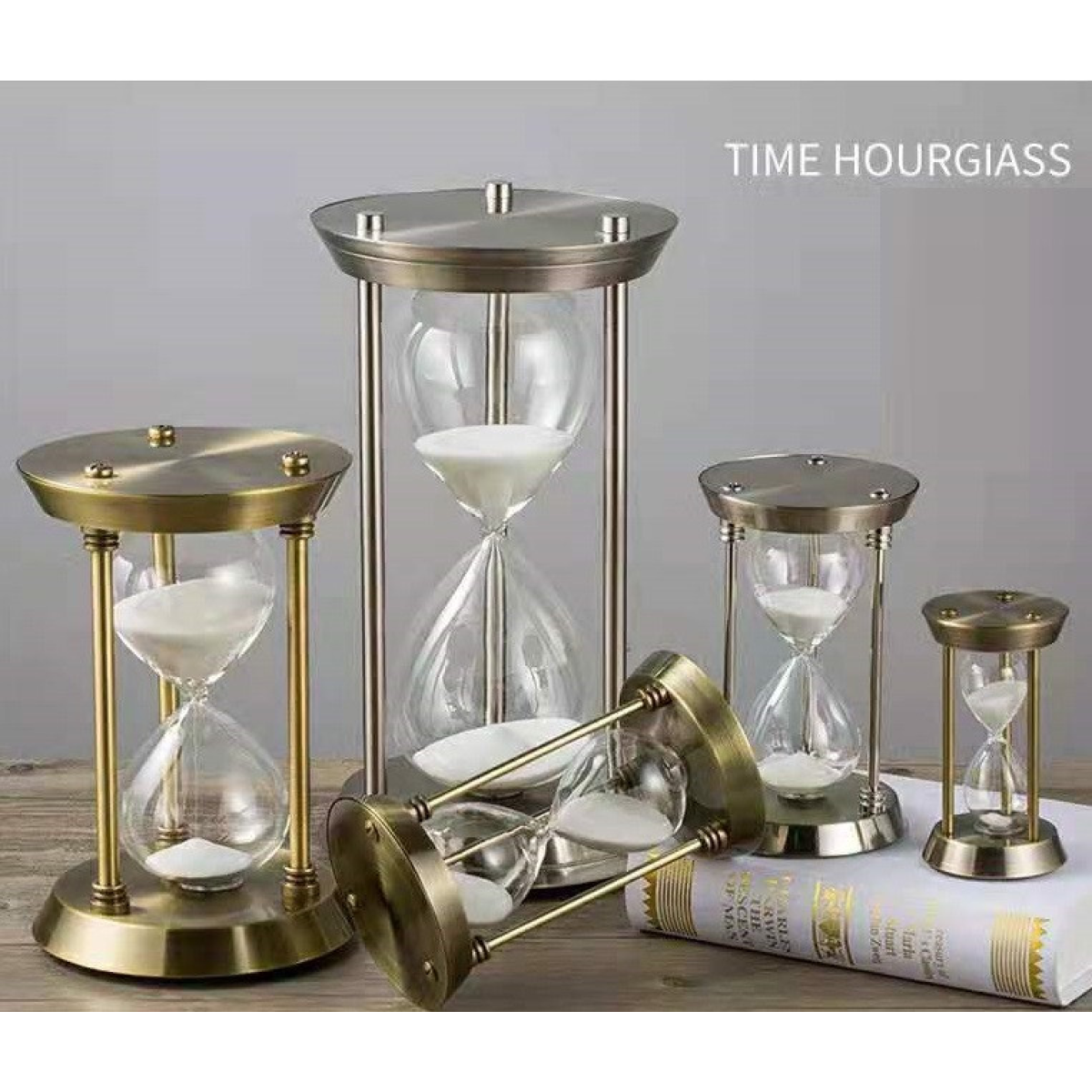 Годинник пісочний у металевому корпусі 60 хв 32 х 17 см колір бронза (білий пісок)