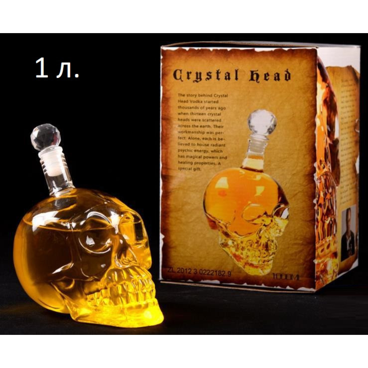 Графин у формі Черепа 1 л (1000 мл) зі скляною кришкою, для віскі, горілки, коньяку