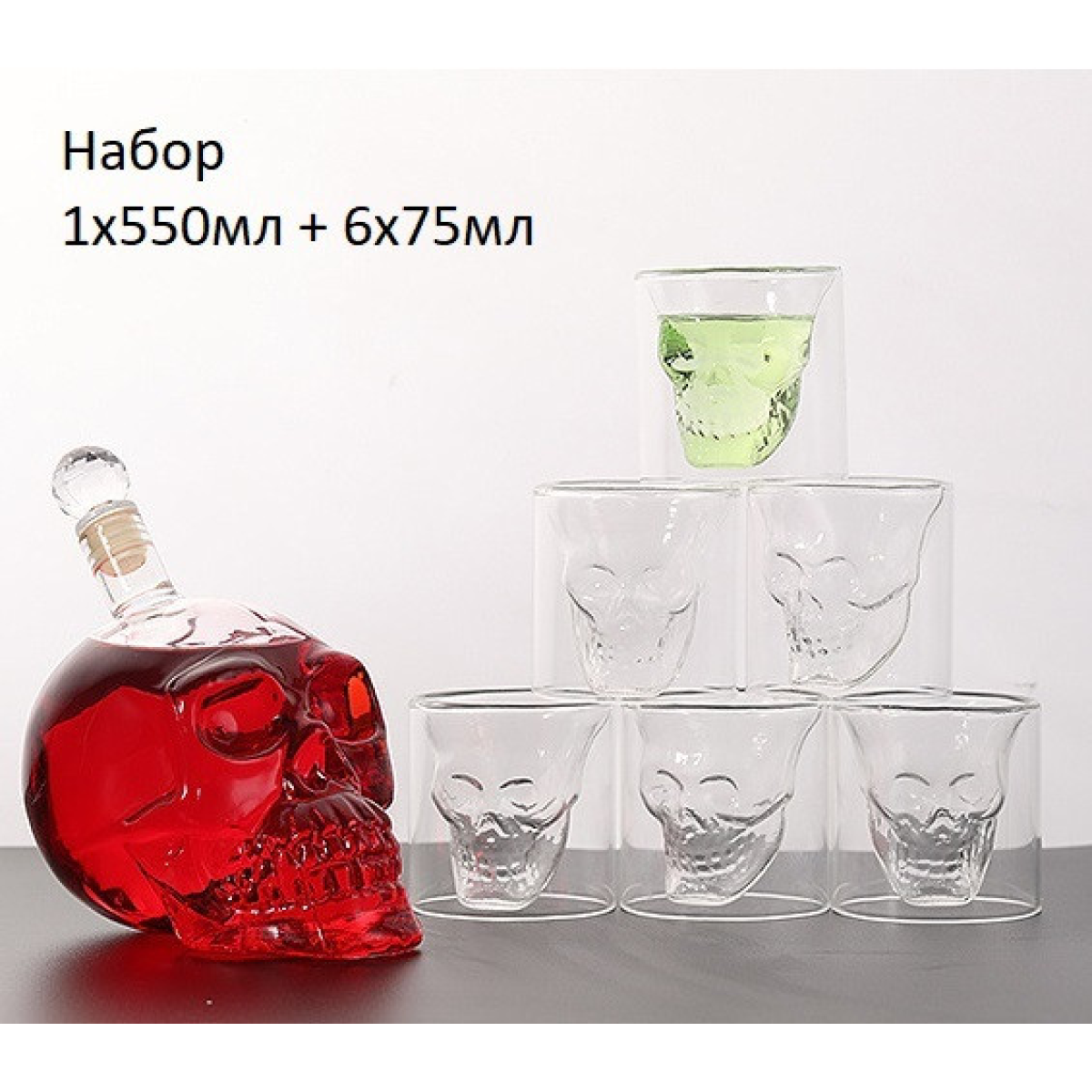 Подарунковий набір Графін у формі черепа 550 мл і 6 склянок черепа 75 мл.