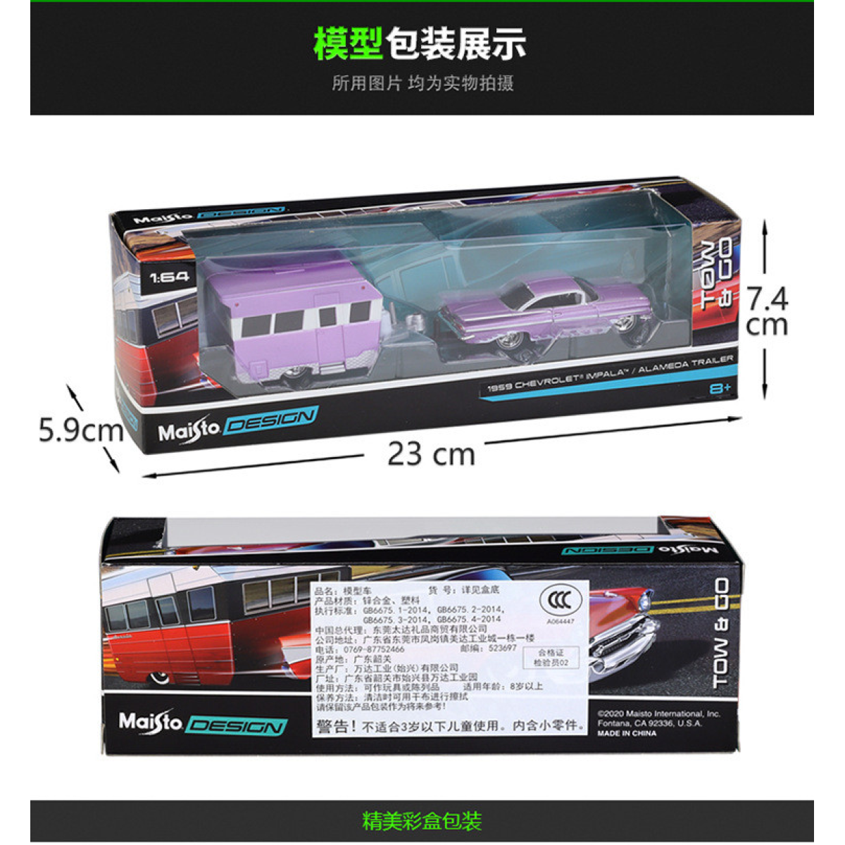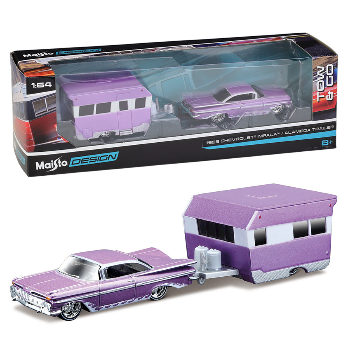 Модель Maisto 1:64, авто з трейлером Chevrolet Impala Alameda Trailer Set 1959 року у штучному пакованні