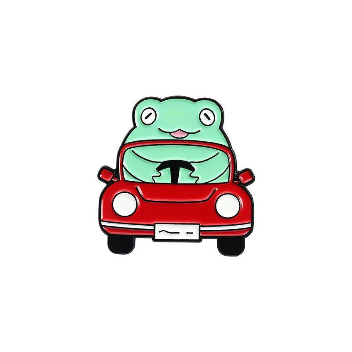 Брошка із зображенням Жаба в авто, металевий значок, пін
