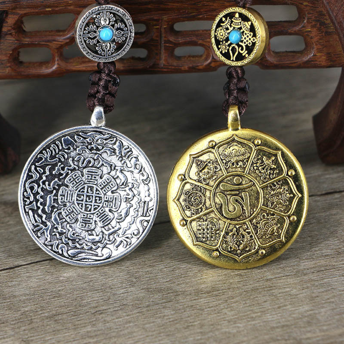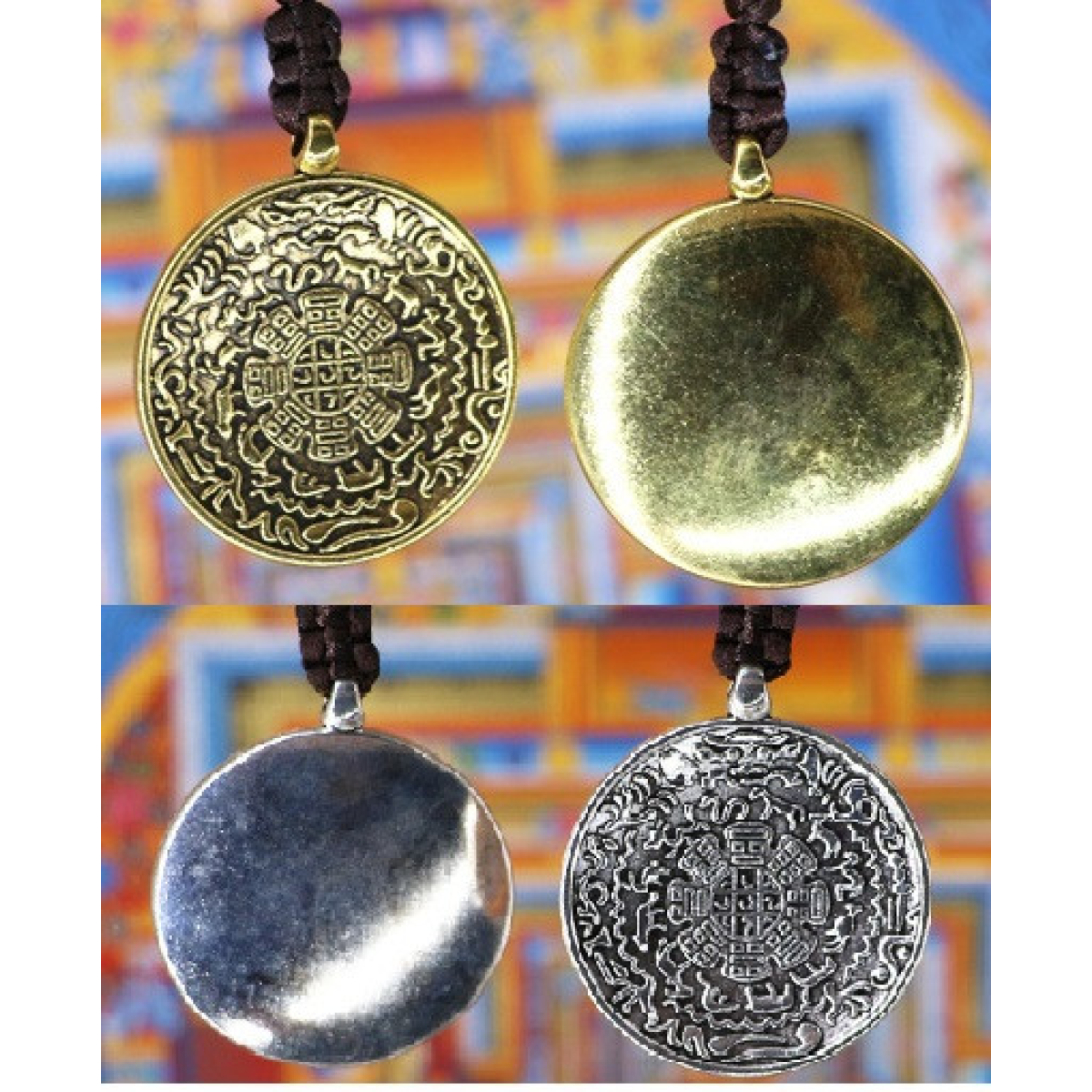 Давня містична тибетська мандала Сіпахо. Діаметр талісмана 32 мм, довжина 18 см. Колір: золото та срібло. нитка колір коричневий