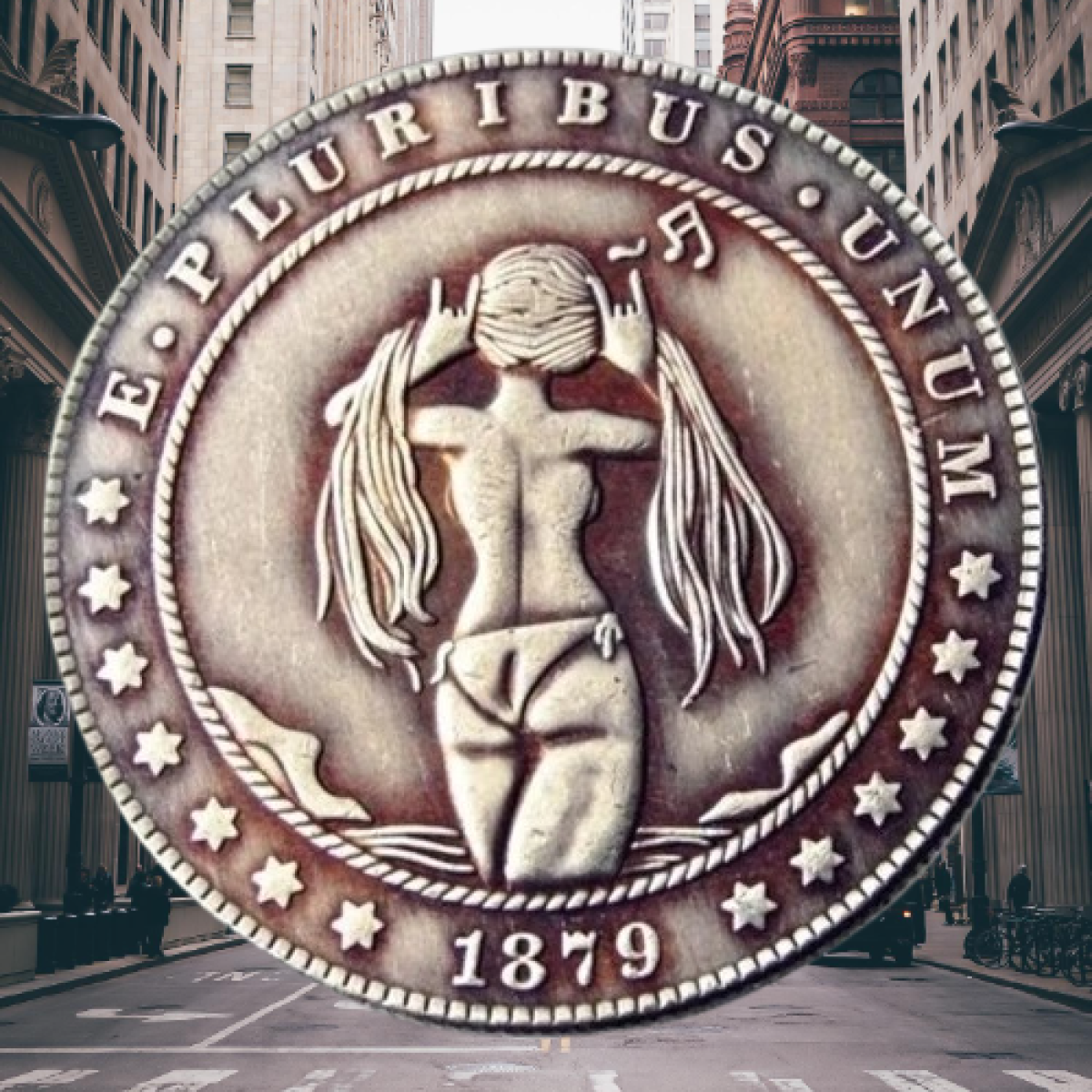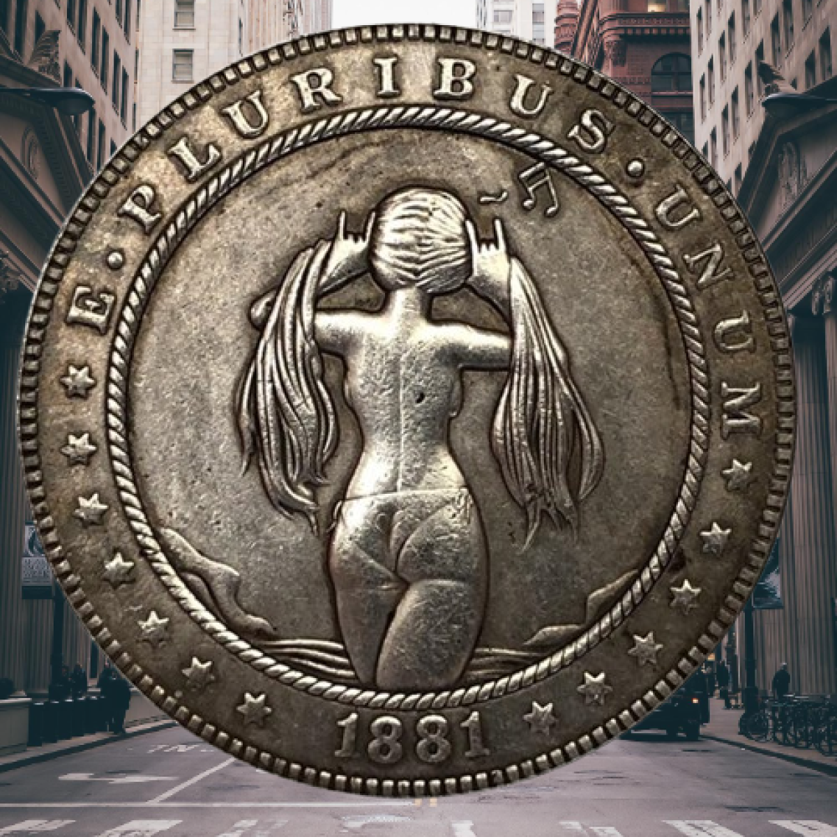 Монета сувенірна долар США 1881р “Дівчинка співає топлес“, Колекція Хобо монет моргана