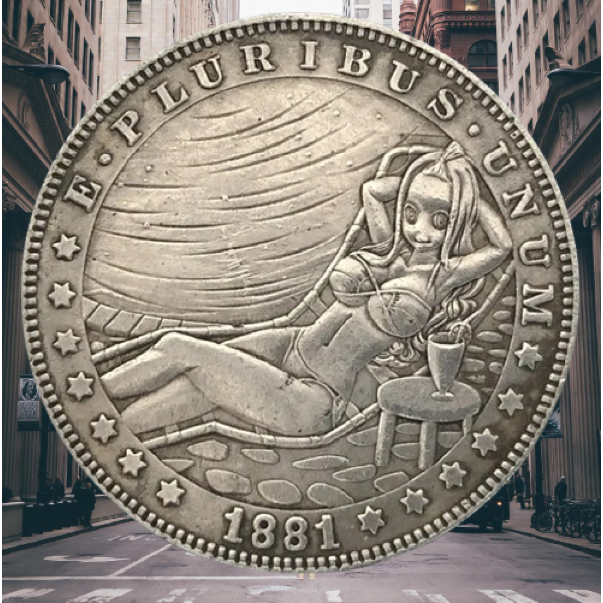 Сувенір монета долар США 1881р “Дівчинка біля басейну“. Hobo Coin American Morgan