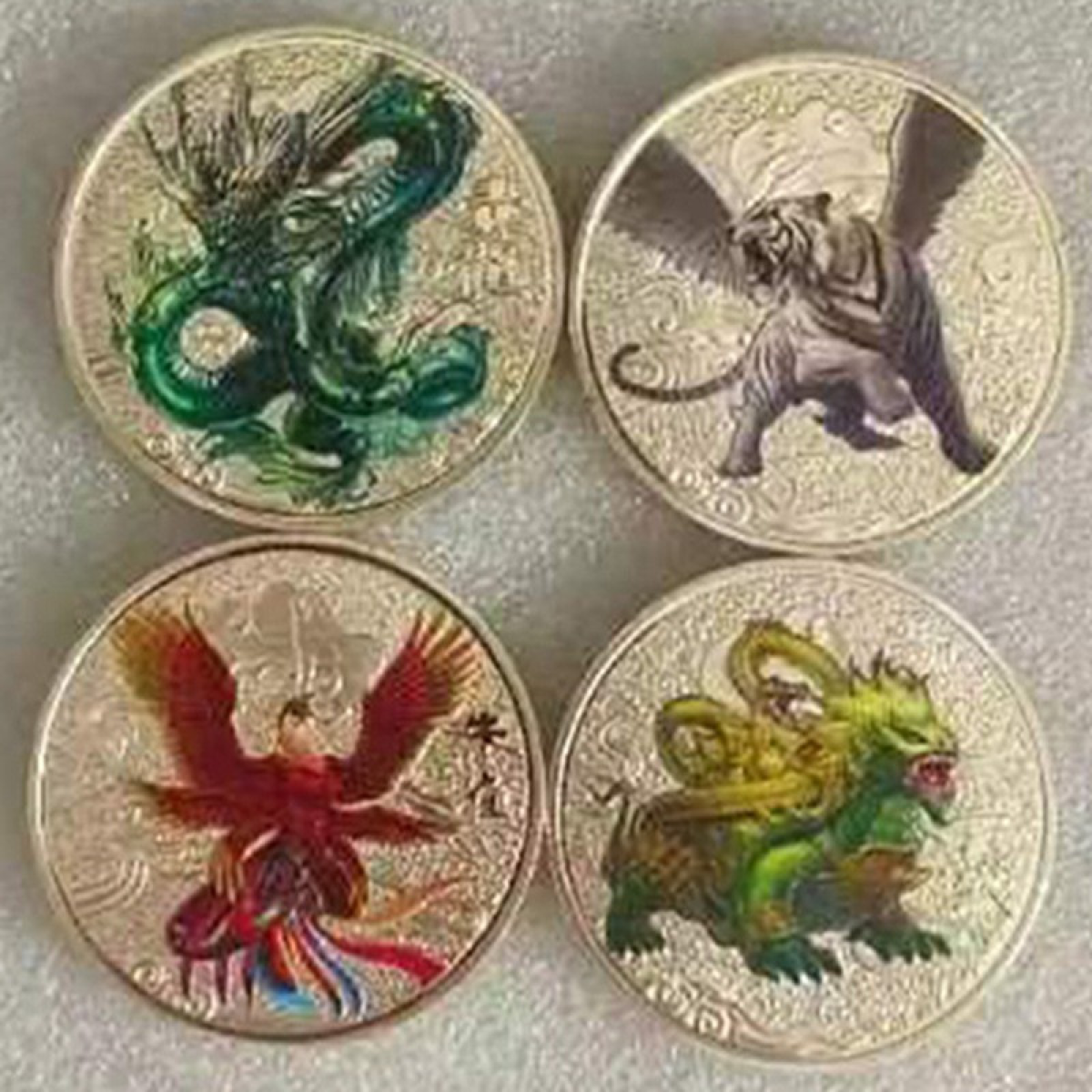 Сувенір набір монет, 4 присвячених тварин Китаю. 4х2.5 см сильвер