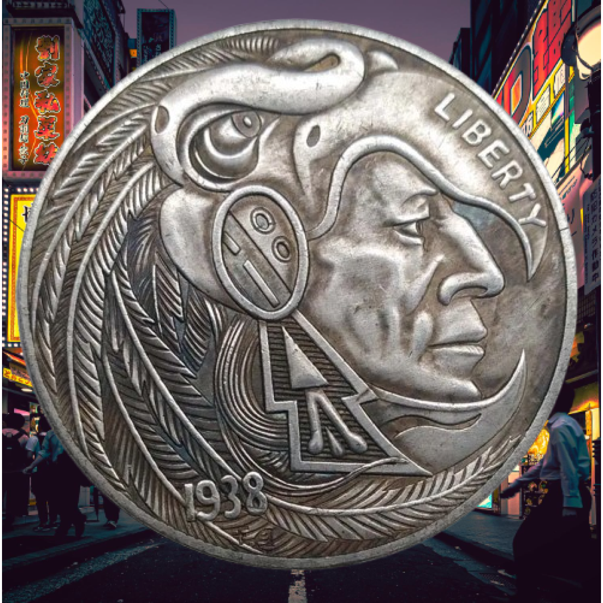Сувенір монета долар СШАгодні819г “Індеець у шоломі орла“. Hobo Coin American Morgan
