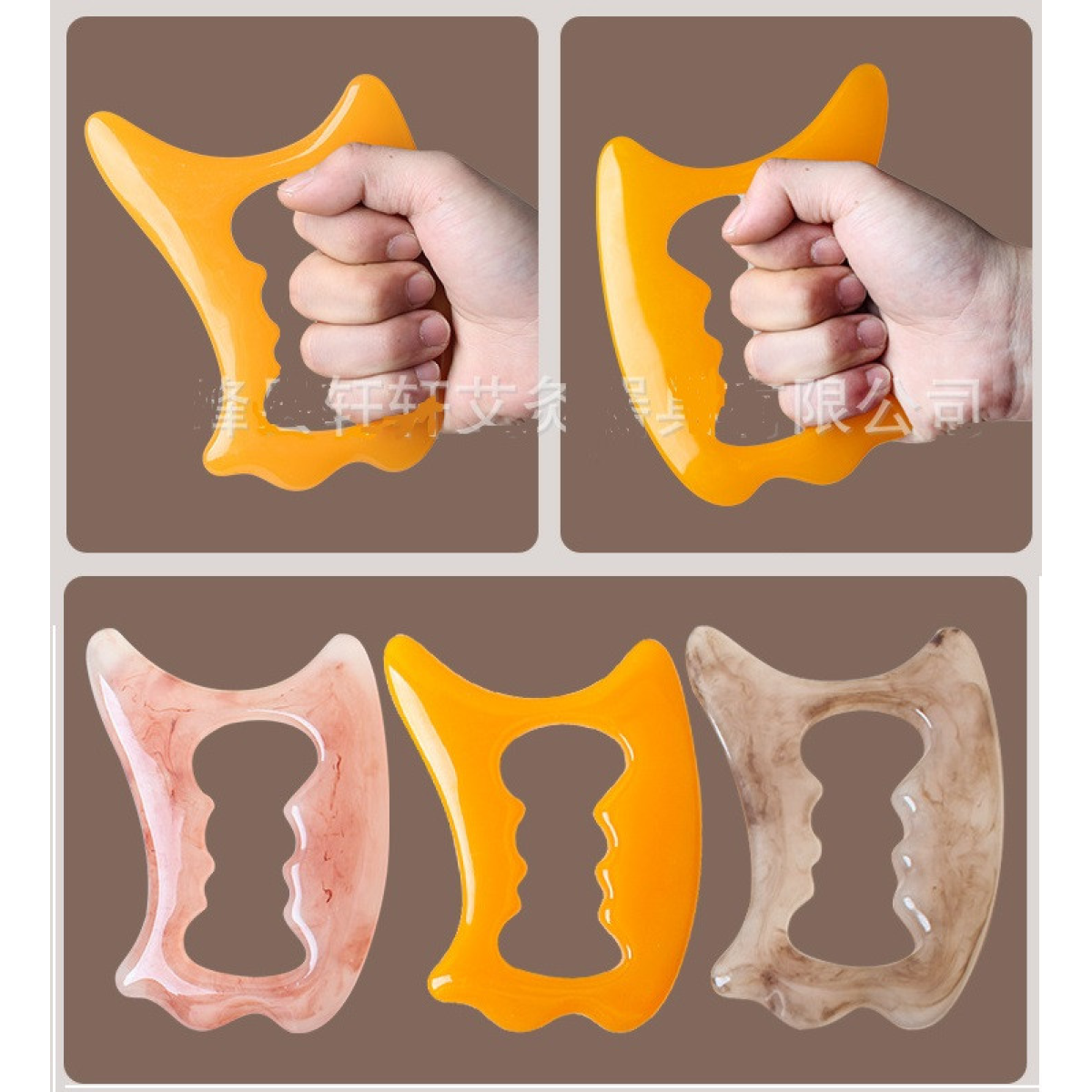 Пластини у формі серця, рибки, лапки гусака гусака, півмісяця без гострих кутів ідеально підходять для масування зон носа та губ, ретельного опрацювання контуру обличчя. Для тіла підійдуть скребки у формі серця або лопатки. Масувати голову можна за допомогою невеликих чотирикутних шкребків або гребеня. Середнього розміру прямокутні або квадратні інструменти — універсальні, для загального масажу. Масажер у формі палички призначений для акупунктурного впливу. Шкребок «ложка» зручно використовувати для масажу стоп.