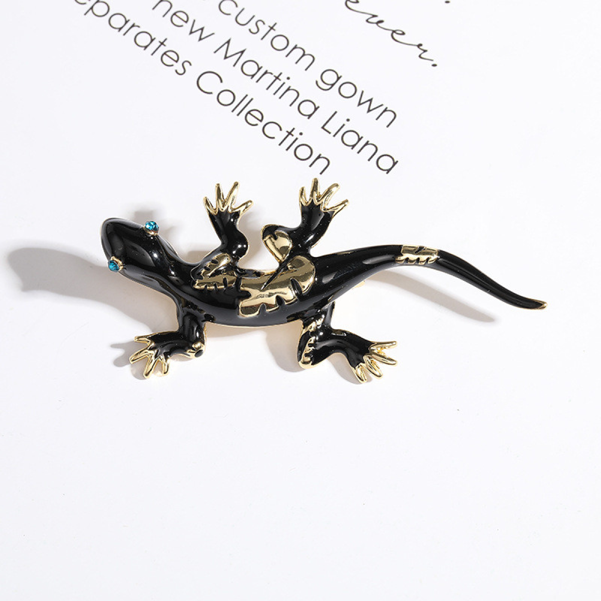 Брошка — це вишукана прикраса, яка чудово доповнить будь-який образ. Вона виготовлена з натурального металу золотистого кольору та має форму Ящірки. Довжина броші становить приблизно 6 см. Вона прикрашена невеликими прекрасними каменями та деталями.