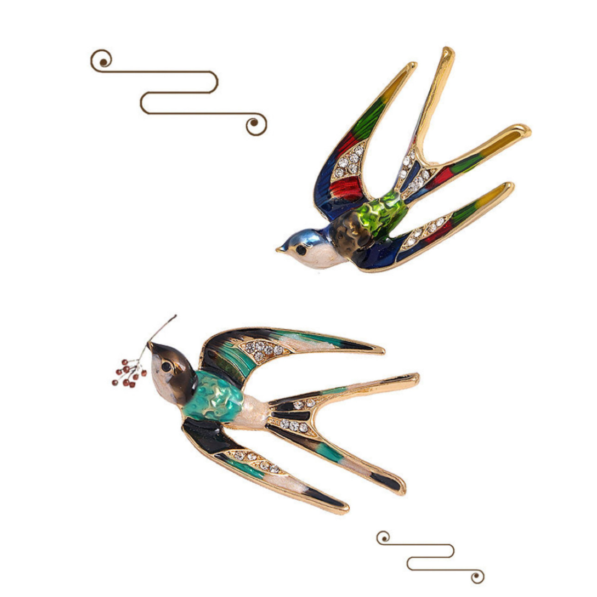 Брошка — це вишукана прикраса, яка чудово доповнить будь-який образ. Вона виготовлена з натурального металу золотистого кольору та має форму Ластівки. Довжина броші становить приблизно 5 см. Вона прикрашена невеликими прекрасними каменями та деталями.