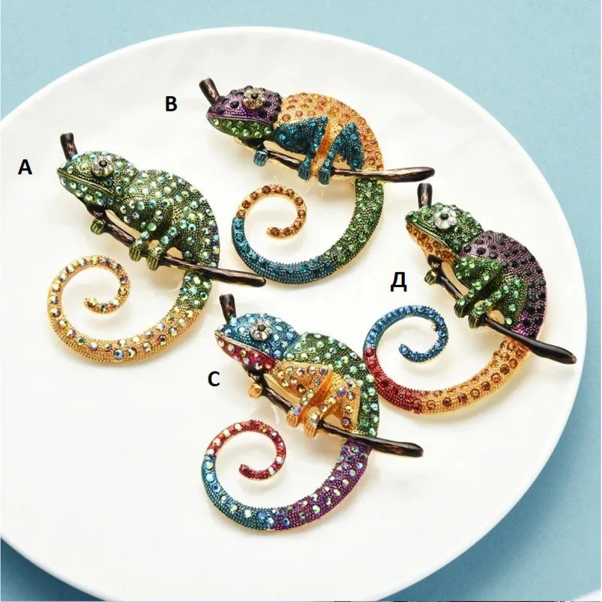 Брошка — це вишукана прикраса, яка чудово доповнить будь-який образ. Вона виготовлена з натурального металу золотистого кольору та має форму Ящірки. Довжина броші становить приблизно 6 см. Вона прикрашена невеликими прекрасними каменями та деталями.
