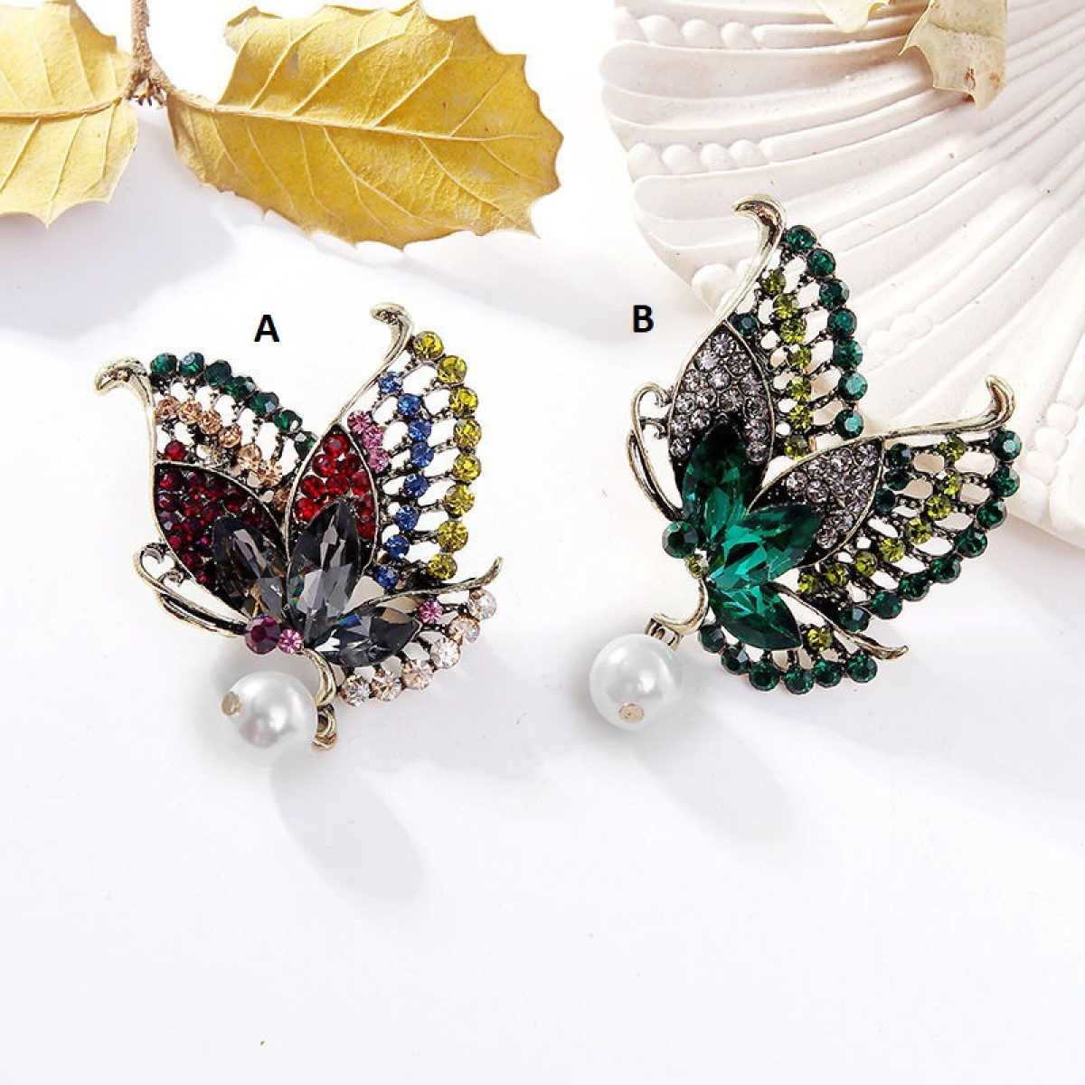 Брошка “Метелик із перлами“, біжутерія з кристалами (5х4 см), елегантна брошка для костюма, брошка