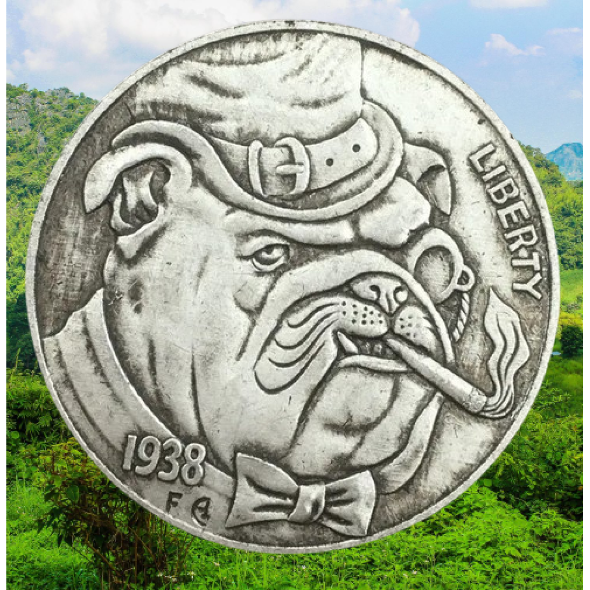 Сувенір монета долар США 1938г “Бульдог із сигарою“. Hobo Coin American Morgan