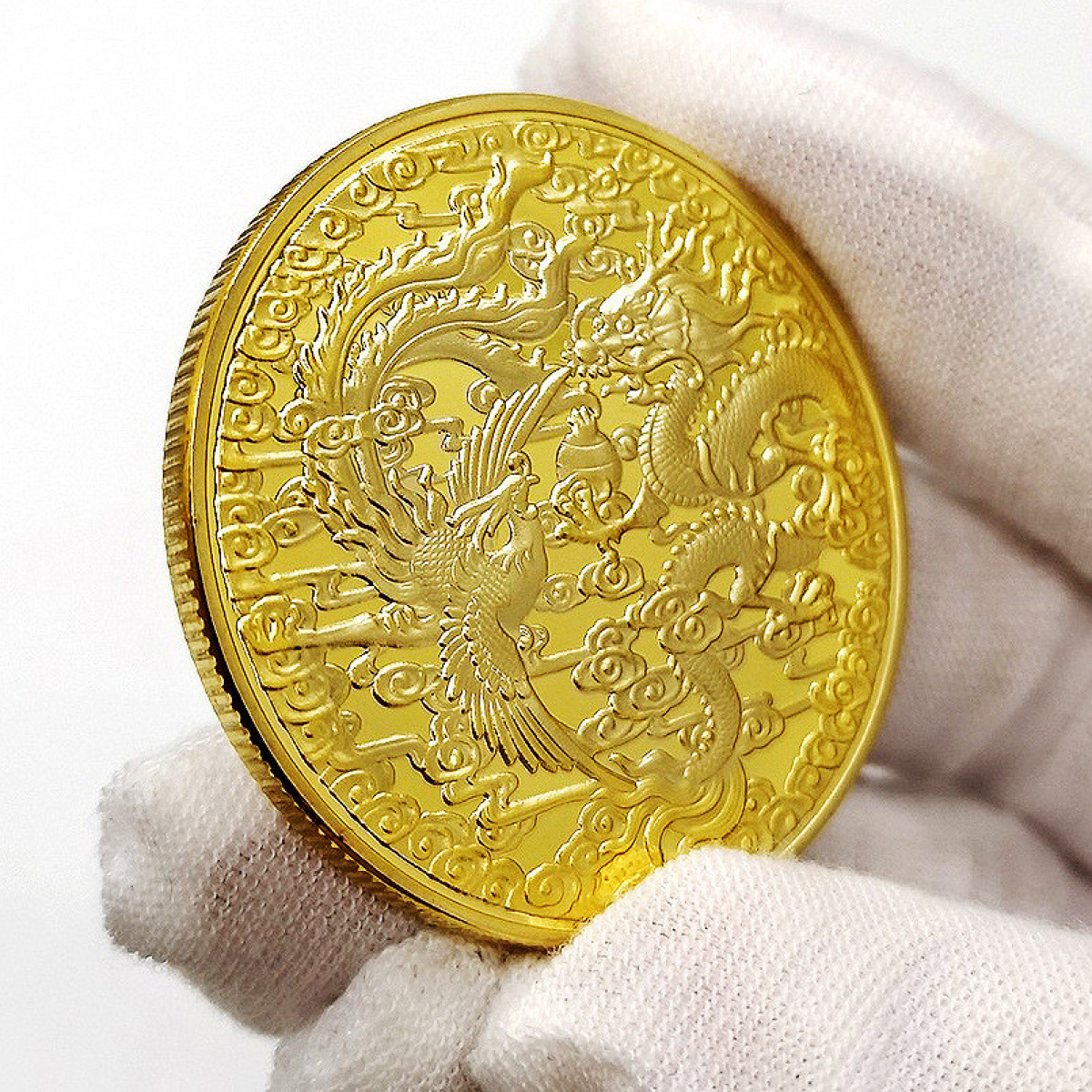 Сувенірна монета “ Дракон і фенікс“ колір золото, монета на удачу. Процвітання