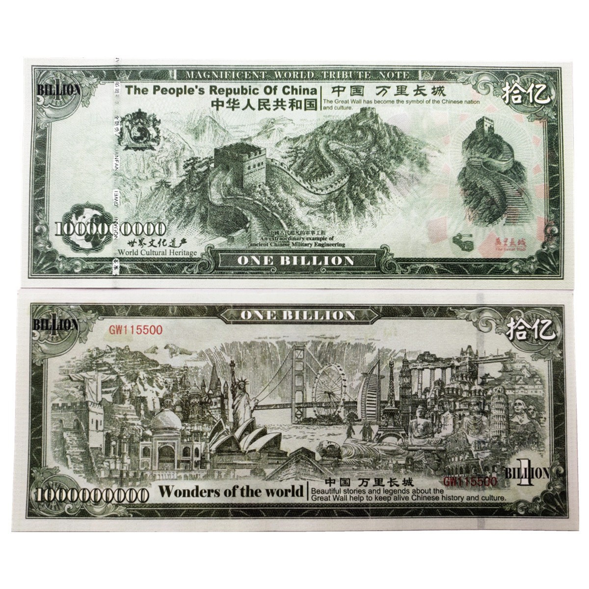 Сувенірна банкнота Китаю 1 Білліон “5485“ (водні знаки). сувенір на удачу