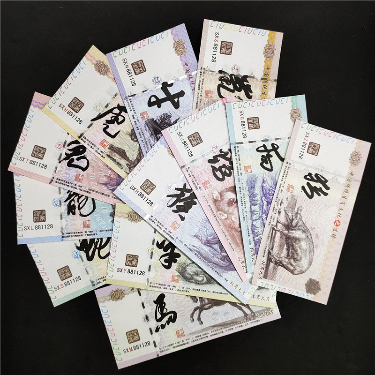 Комплект з 12 зодіакальних пам“ятних тестових колекційних банкнот Китаю