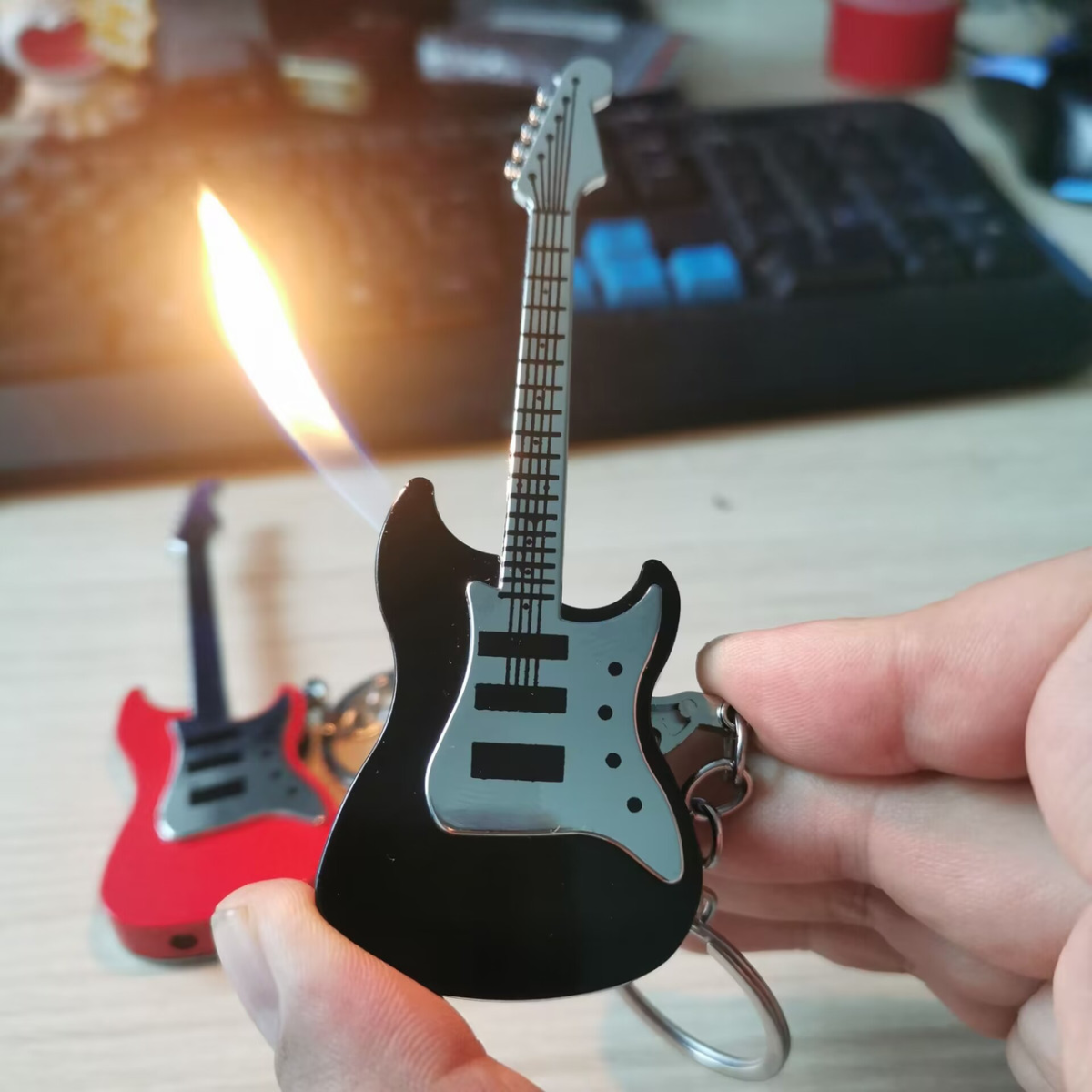 Незвичайна кумедна запальничка у формі Бас-Гітари (червона), заправлювана вінтажна запальничка-брелок
