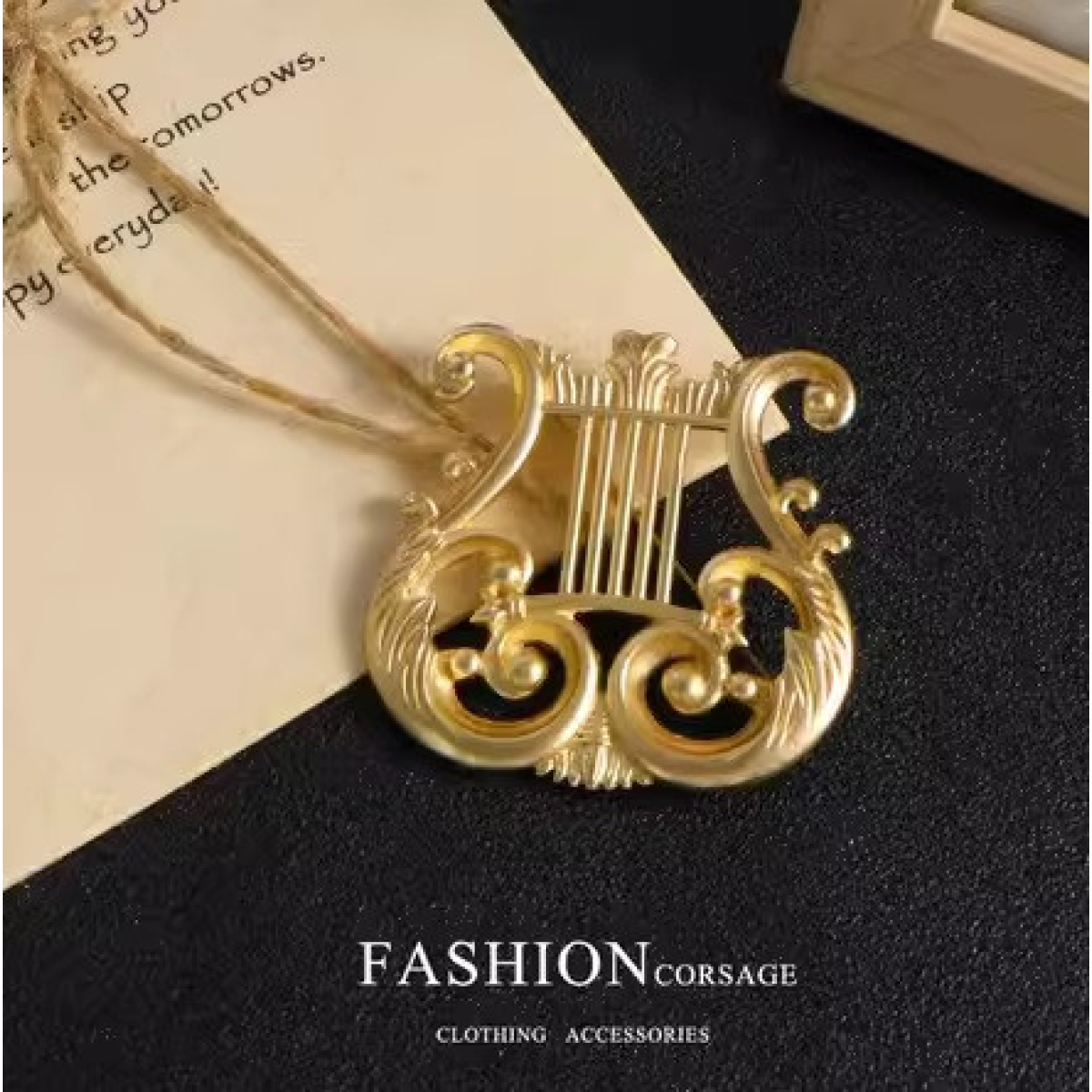 Вінтажна класична брошка “Jazz“ у формі арфи зі сплаву, музика, мистецтво