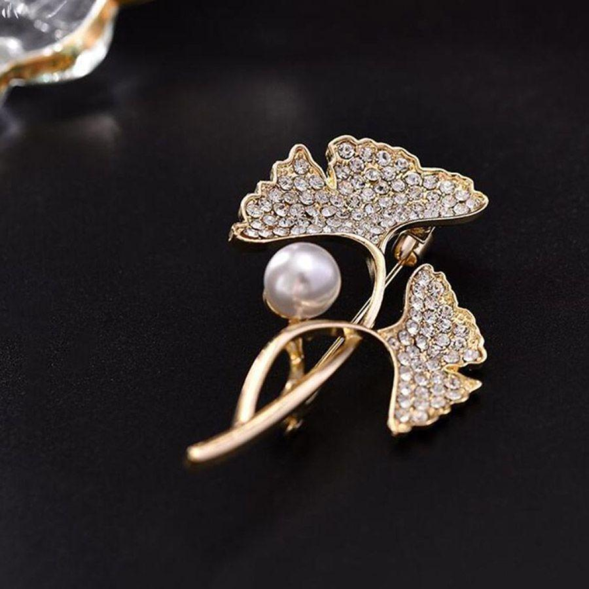 Брошка “Гинкго з перлиною“, брошка із серії “Квіти та рослини“