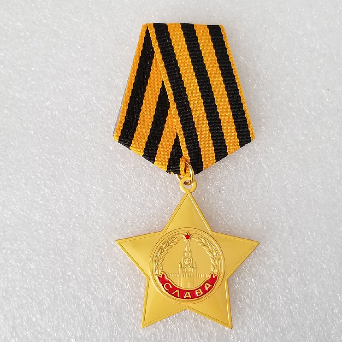 Знак ордена Слави являє собою п“ятиконічну зірку розміром між протилежними вершинами 46 мм. Поверхня променів зірки злегка опукла. На лицьовій стороні в середній частині зірки — коло-медальйон діаметром 23,5 мм із рельєфним зображенням Кремля зі у центрі. По колу медальйона — лавровий вінок. У нижній частині кола опуклий напис «СЛАВА» на червоній емалевій стрічці.