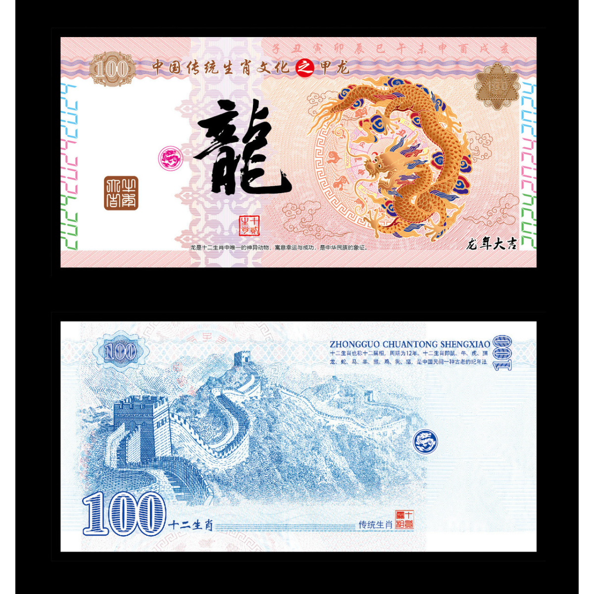 Банкнота Пам“ятниковий купон 10034 Китай «Знак зодіаку Дракон і Велика Китайська стіна», UNC