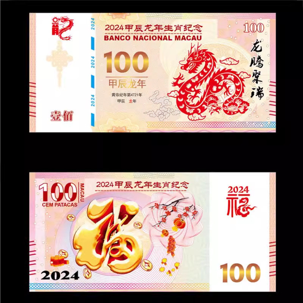 Грошово-кредитним керуванням Макао, Banco Nacional Ultramarino і Banco da China, випустили обмежену кількість банкнот номіналом 100 патака. Грошові знаки присвячені китайському Року Дракона